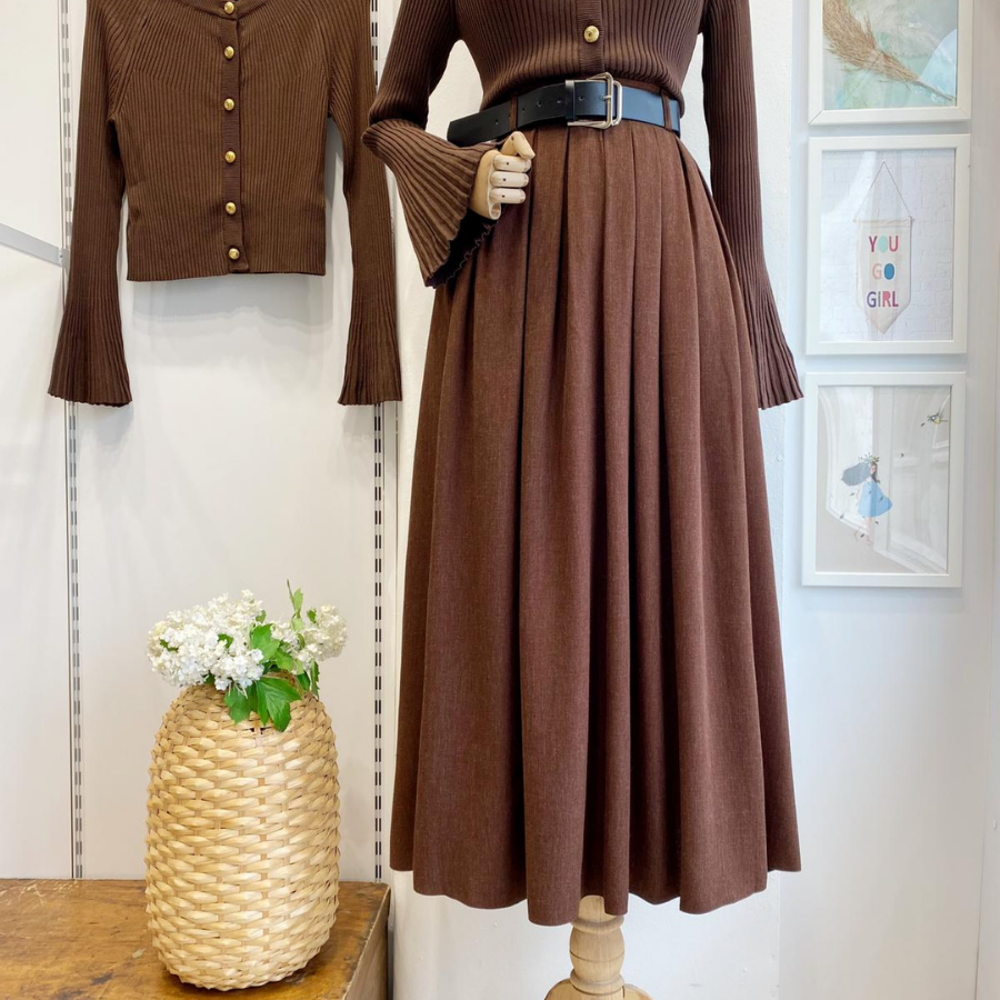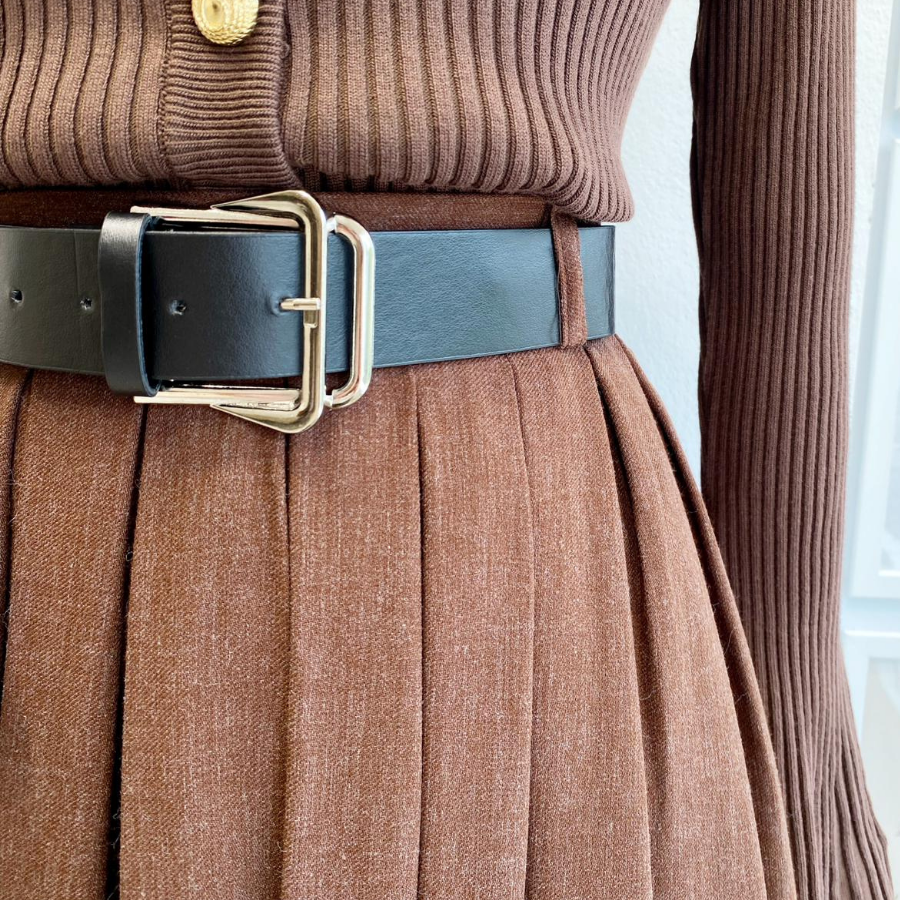 Deri Kemerli Çikolata Kahve Lacelle Yün Etek