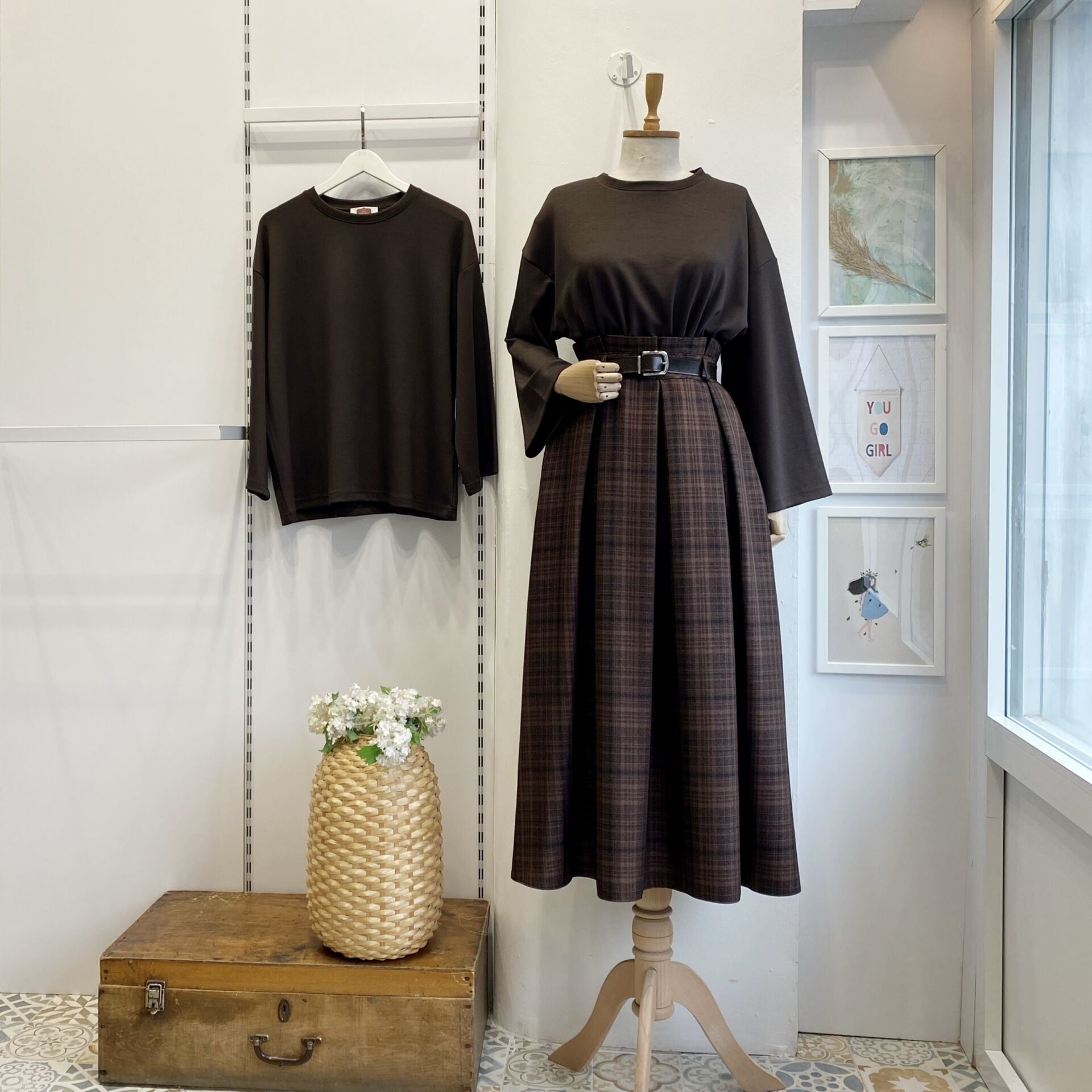 Deri Kemerli Ekoseli Kahverengi Etek