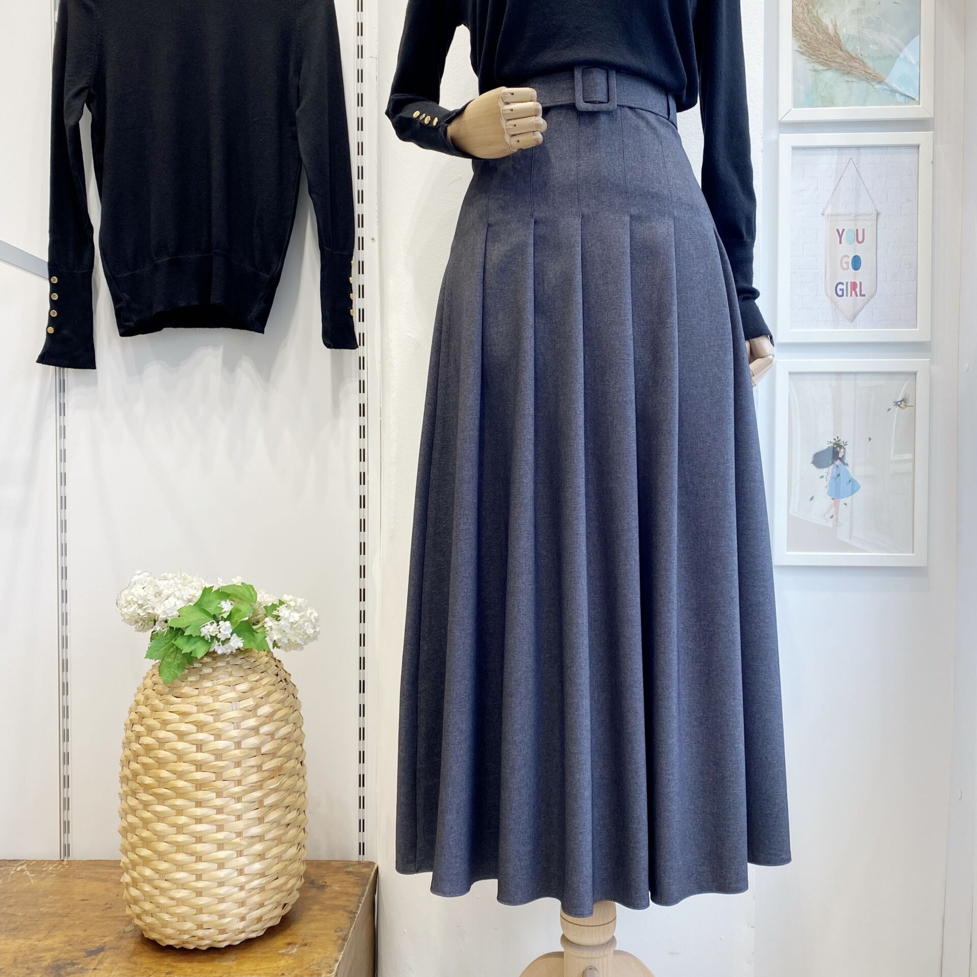 Dikiş Detaylı Kemerli Antrasit Plum Etek