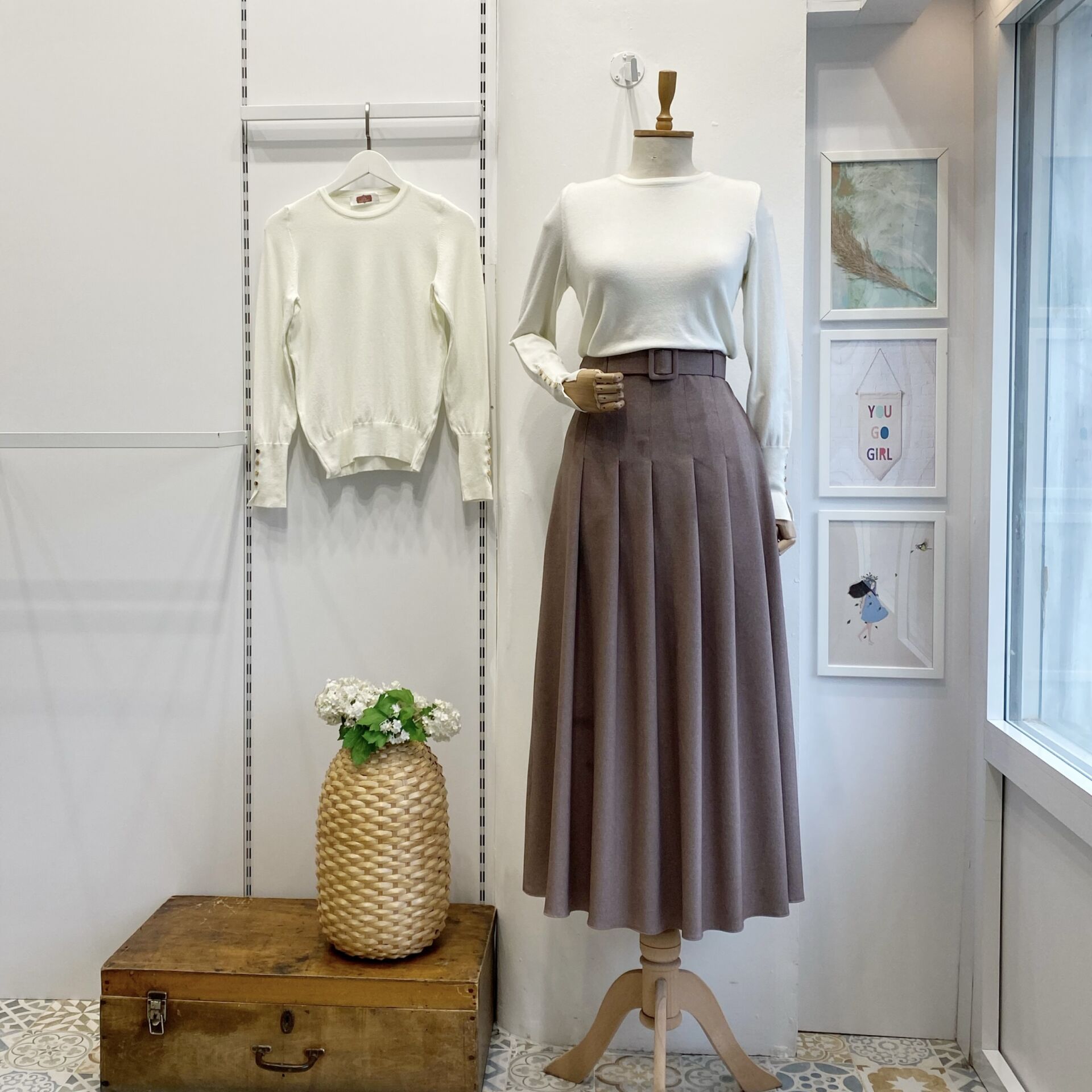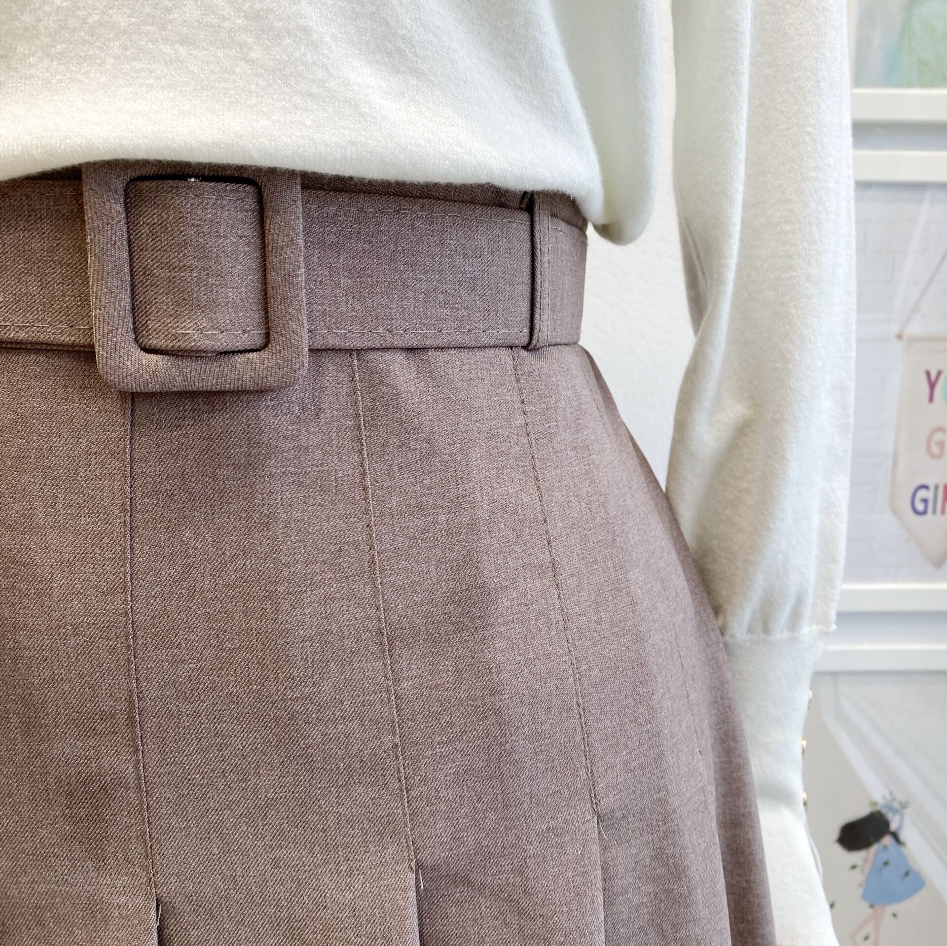 Dikiş Detaylı Kemerli Vizon Plum Etek