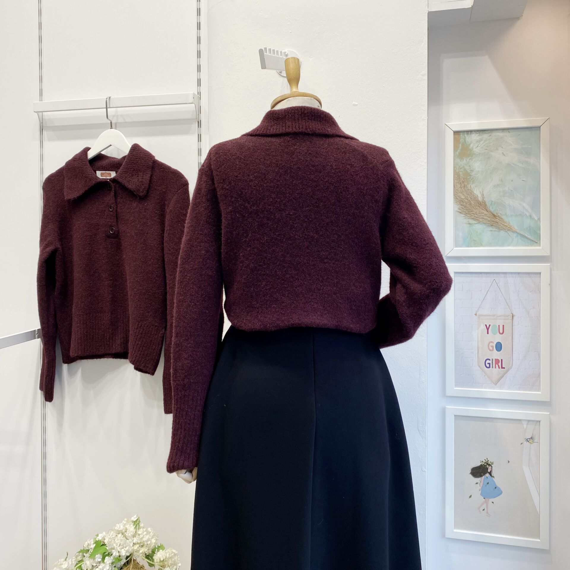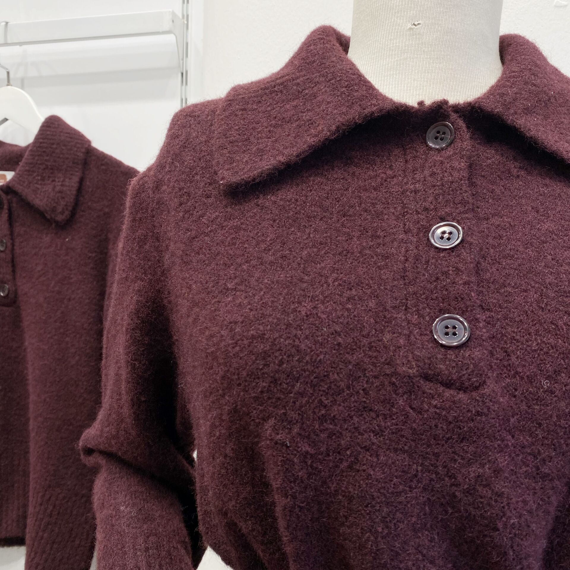 Düğme Detaylı Bordo Polo Yaka Kazak