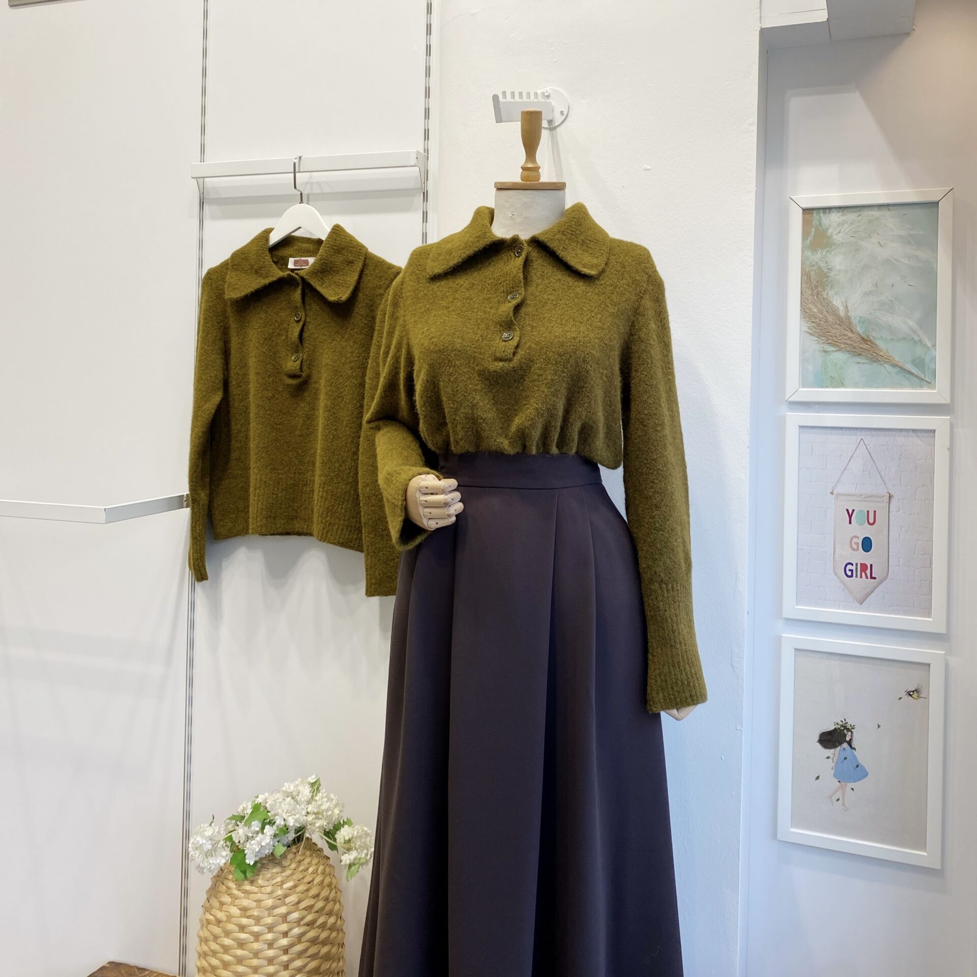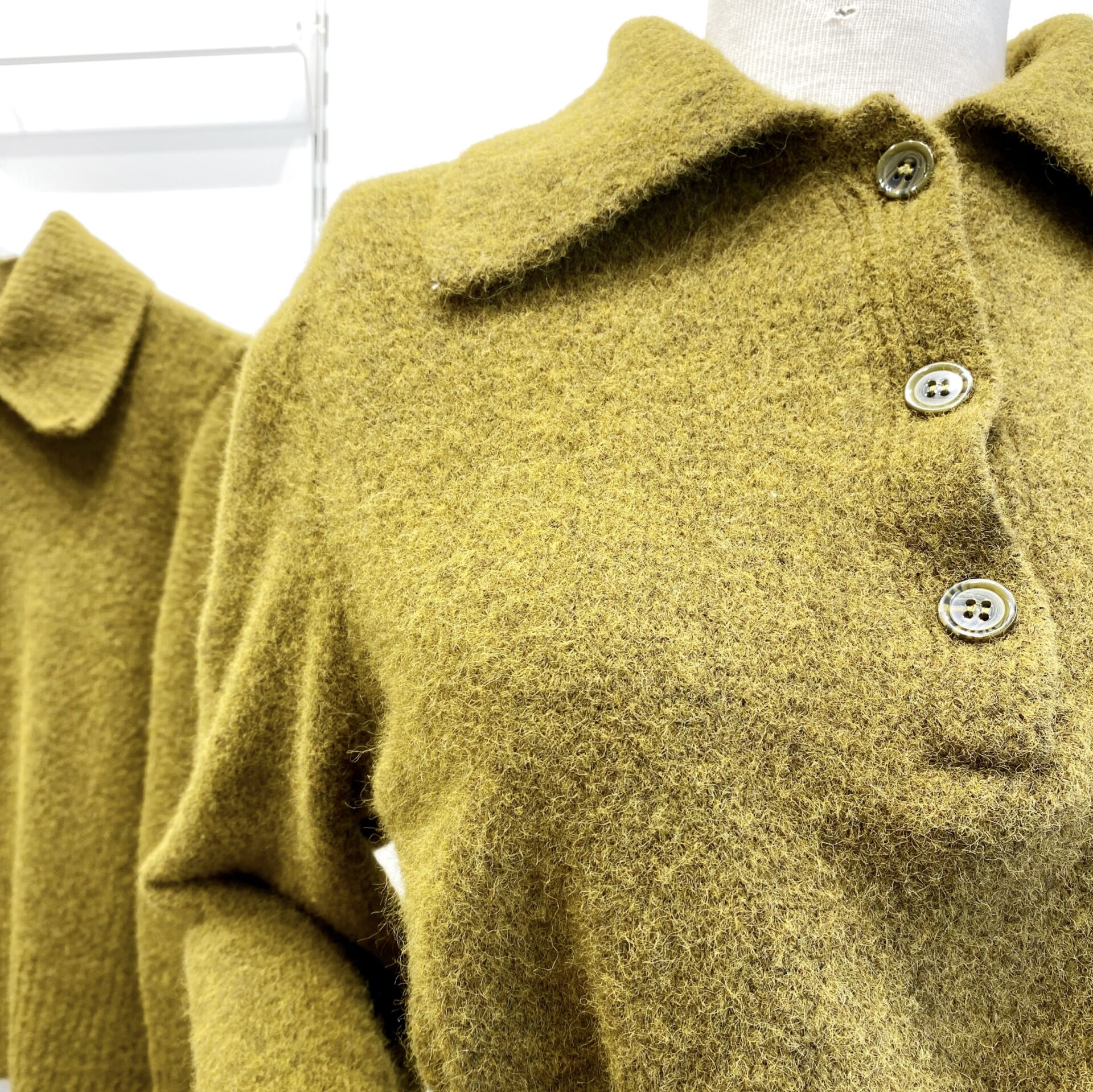 Düğme Detaylı Yağ Yeşili Polo Yaka Kazak
