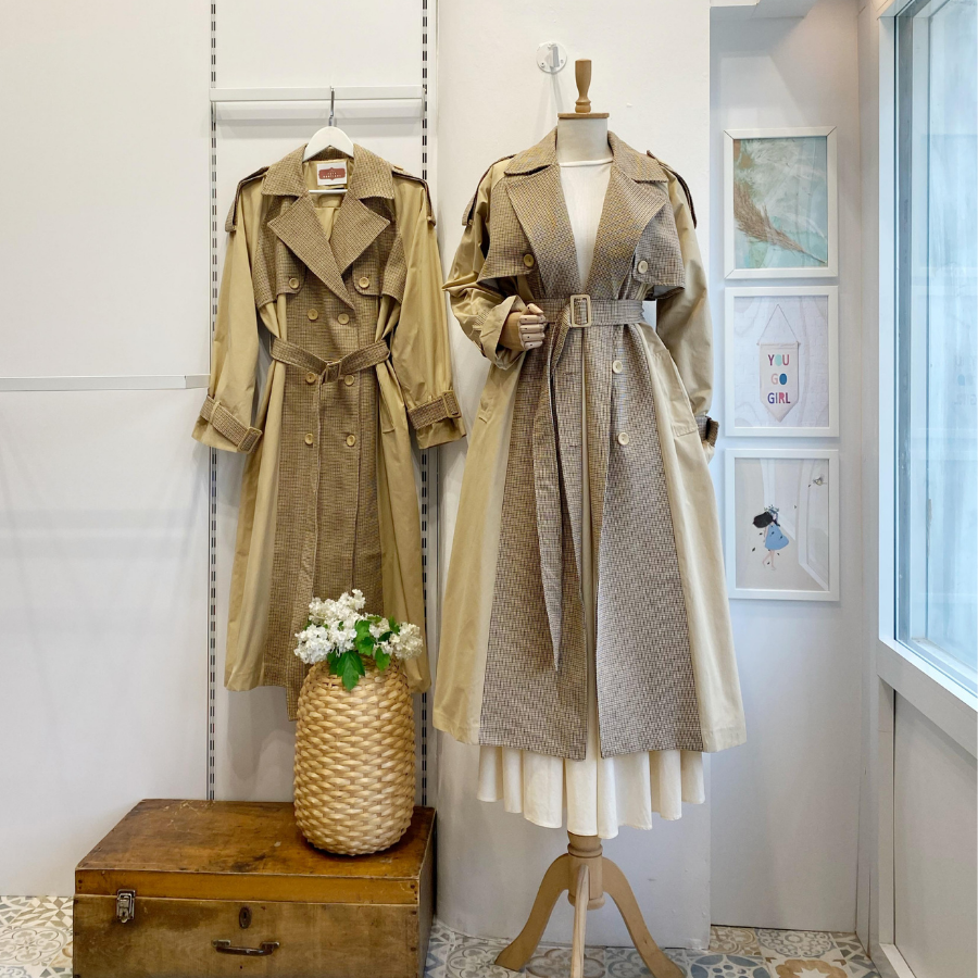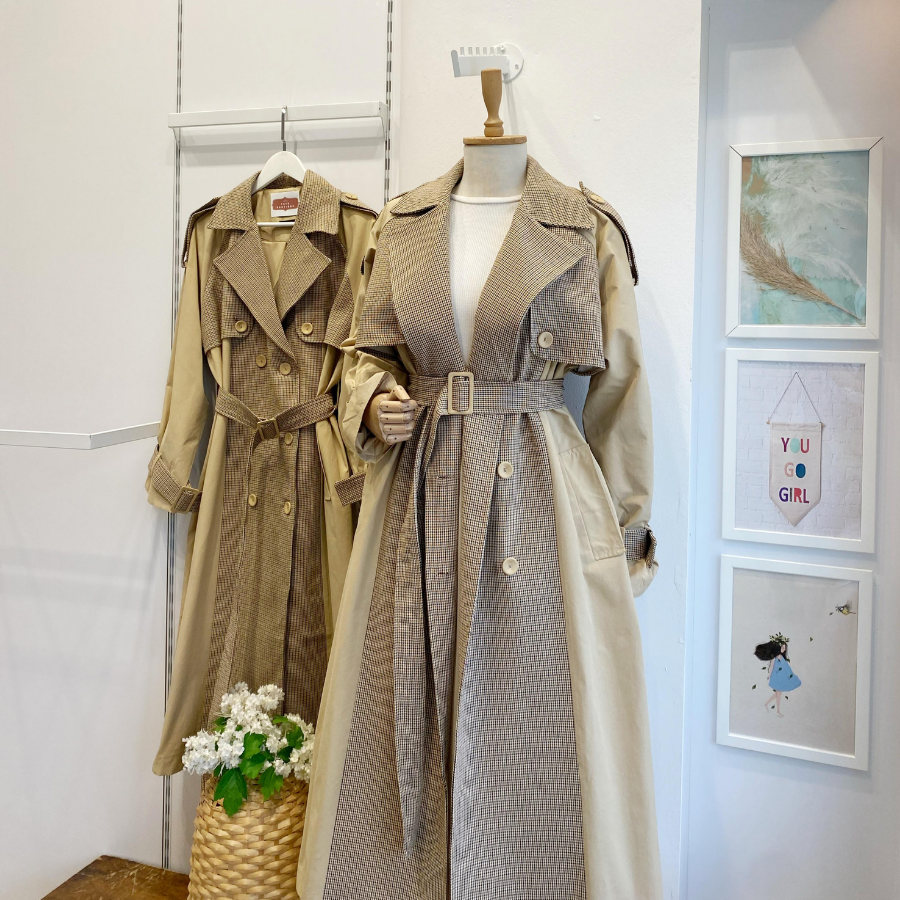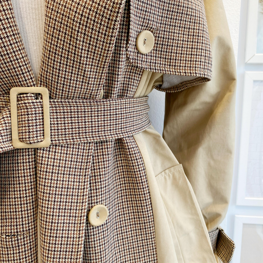 Ekose Detaylı Gabardin Kumaş Trençkot