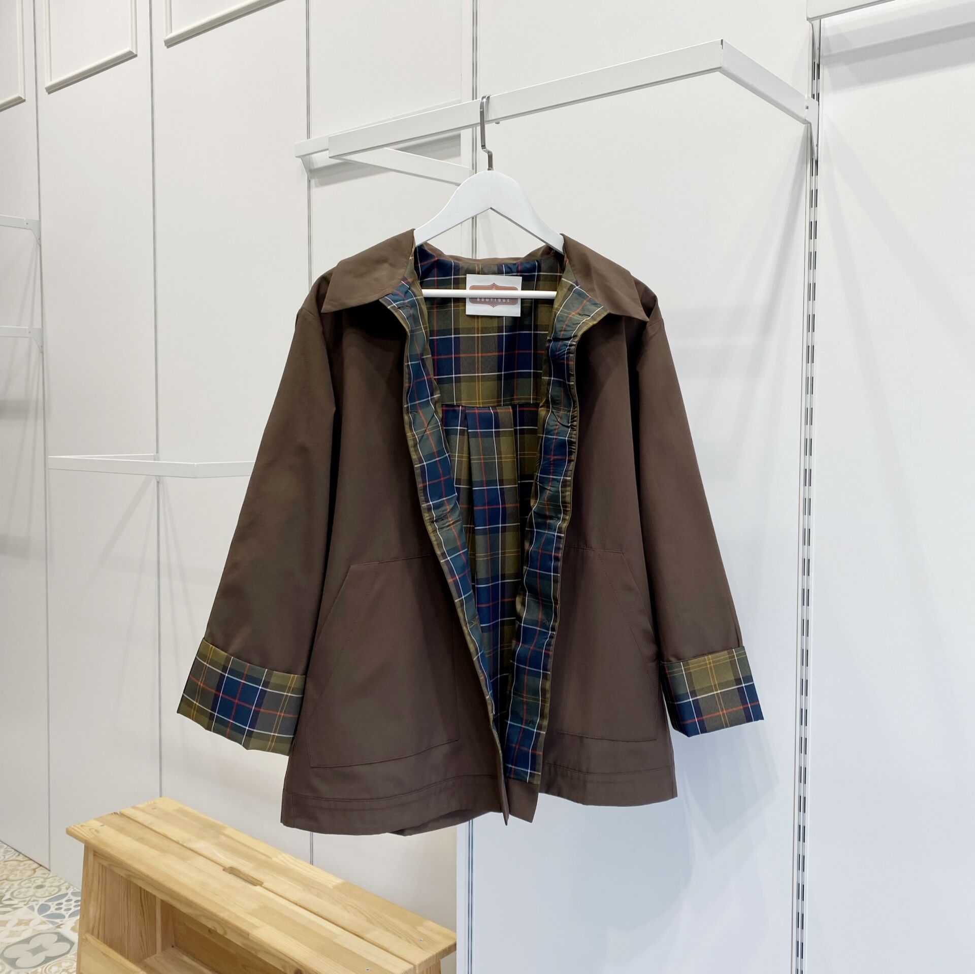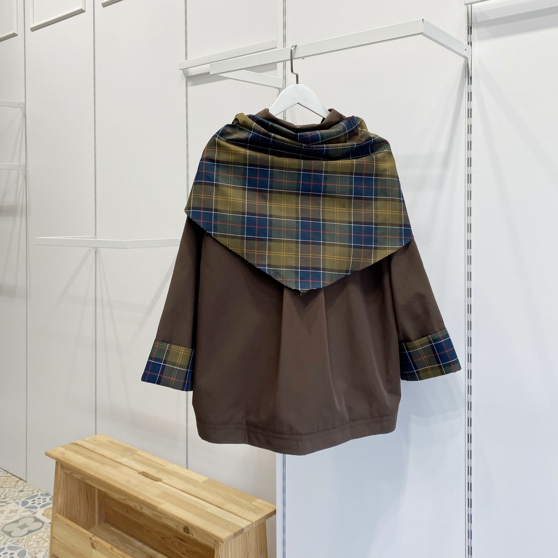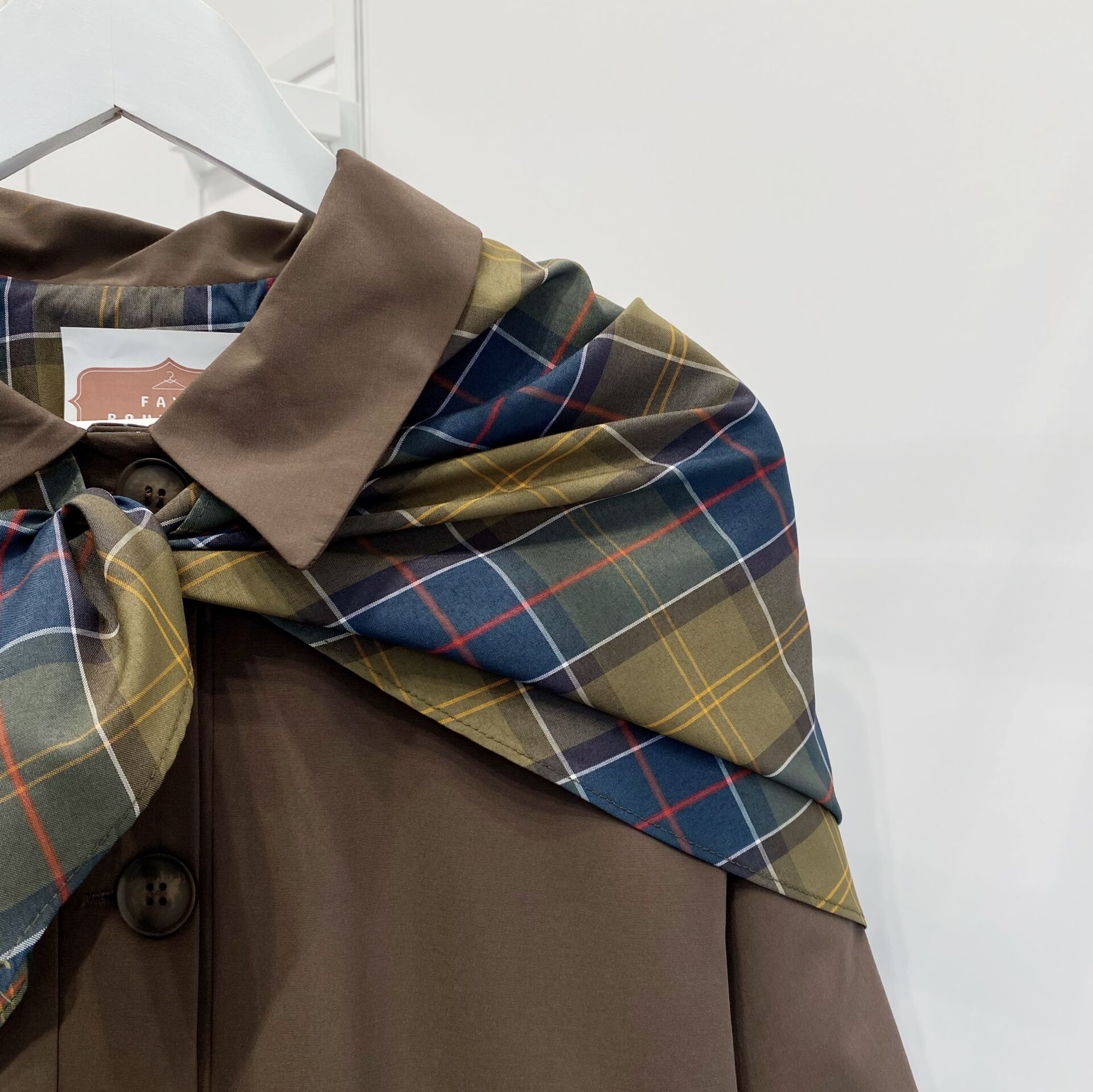 Ekose Fular Detaylı Kahverengi Kısa Trençkot