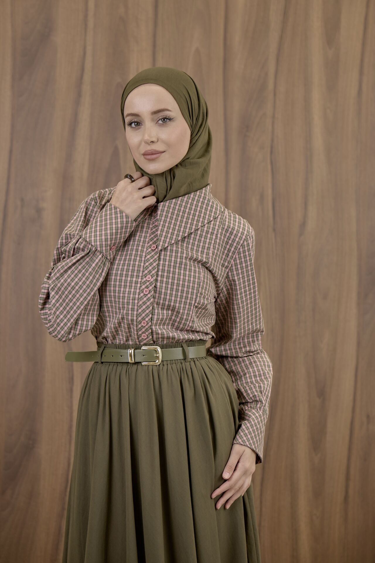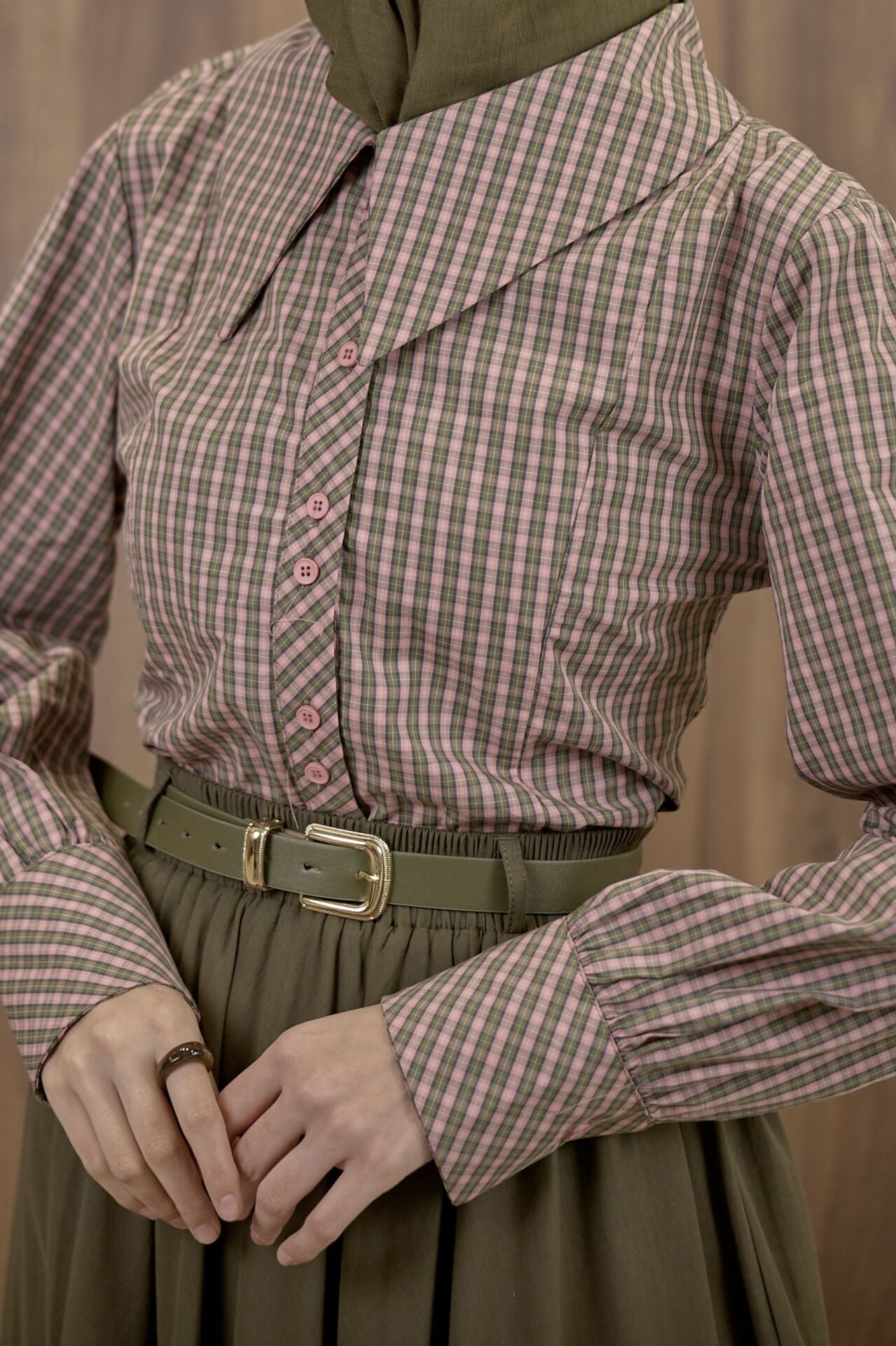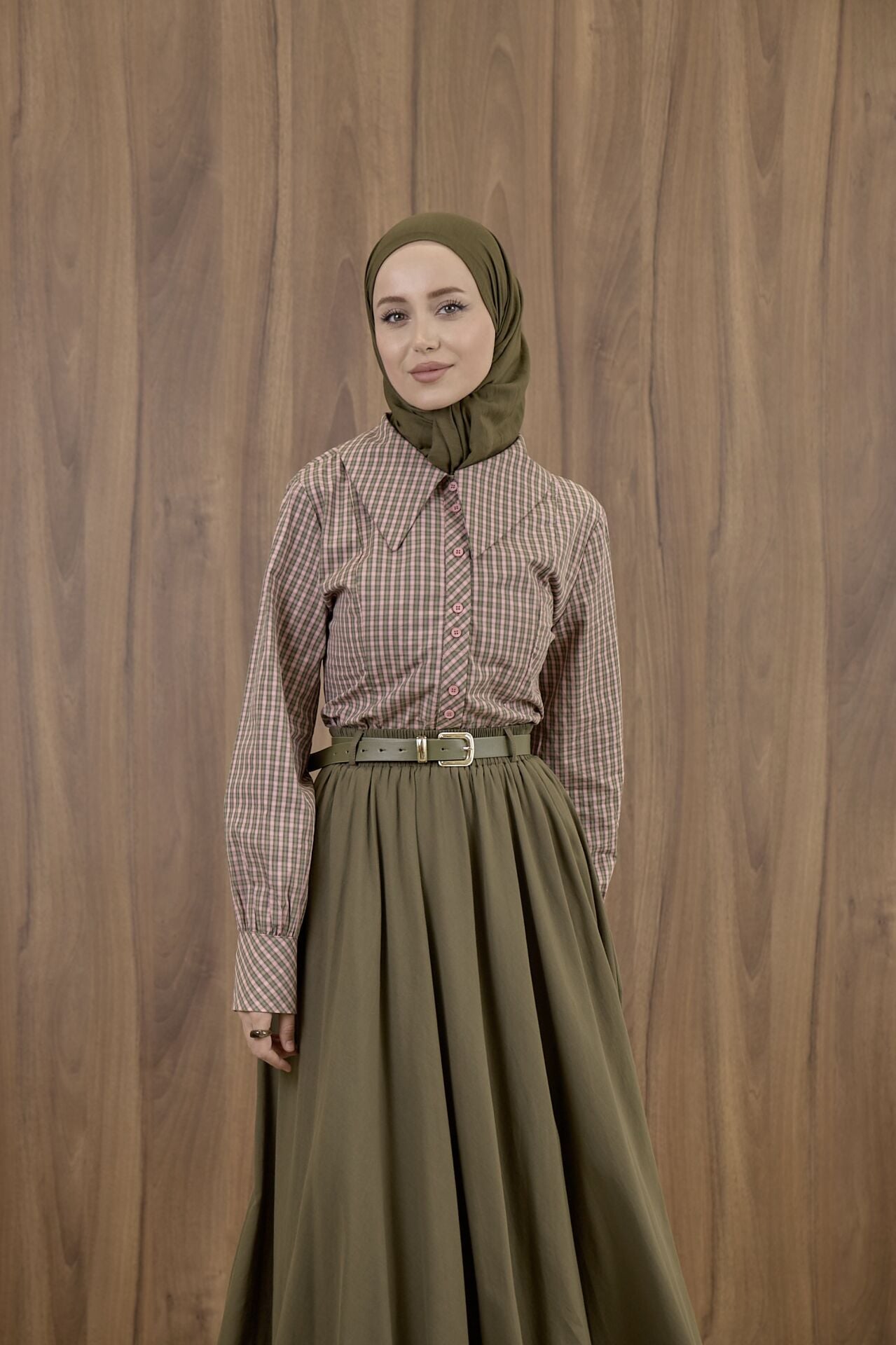 Ekose Pembe Poplin Gömlek
