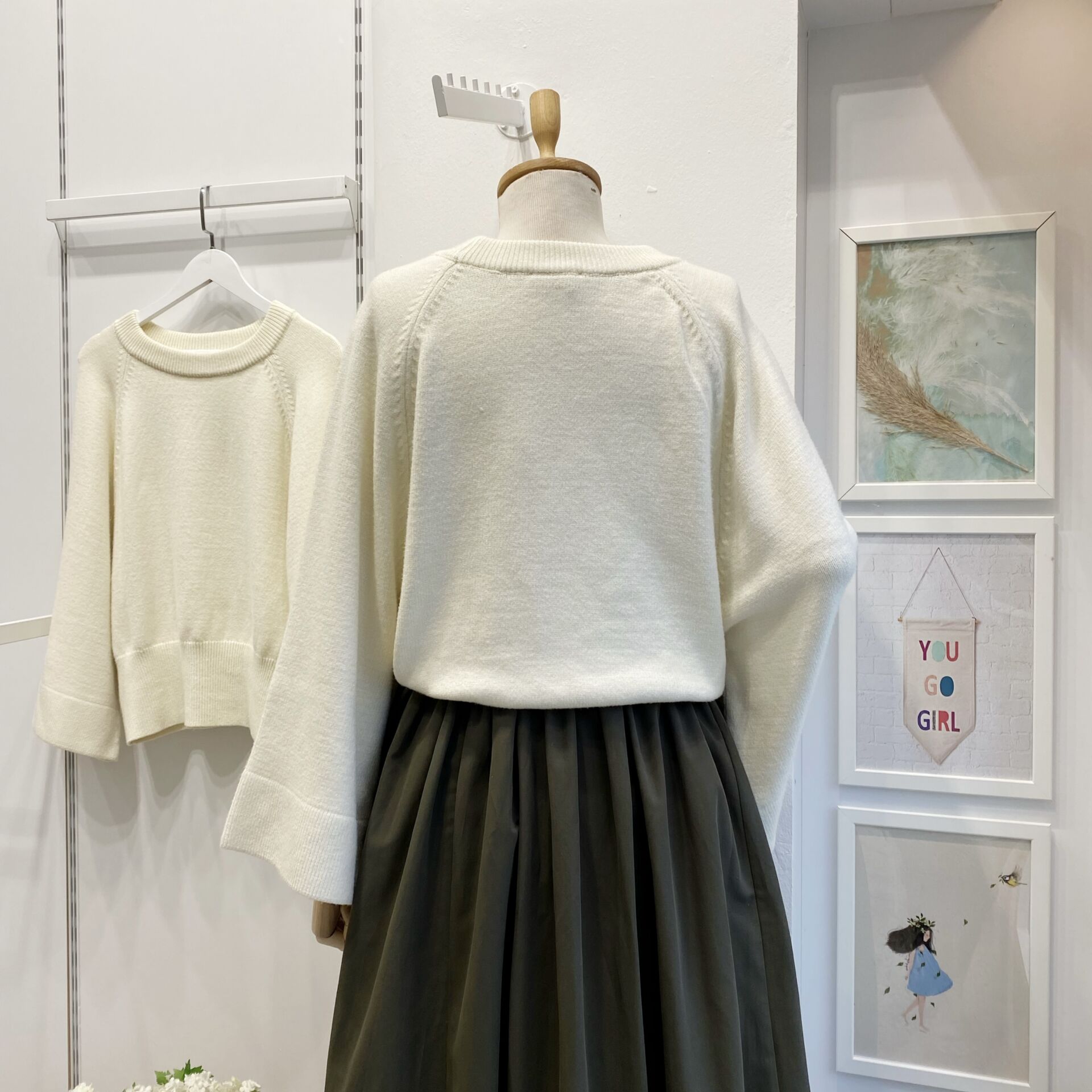 Ekru Bisiklet Yaka Geniş Kol Triko Kazak