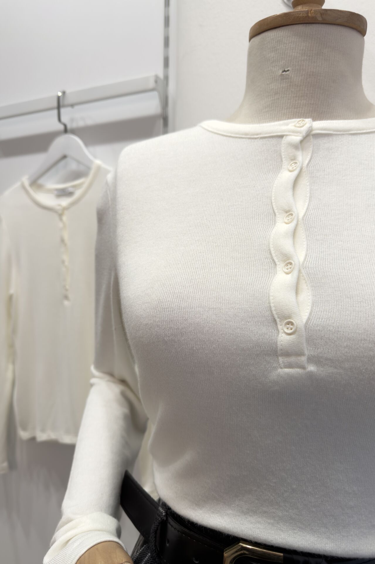 Ekru Düğmeli Blair Triko Bluz