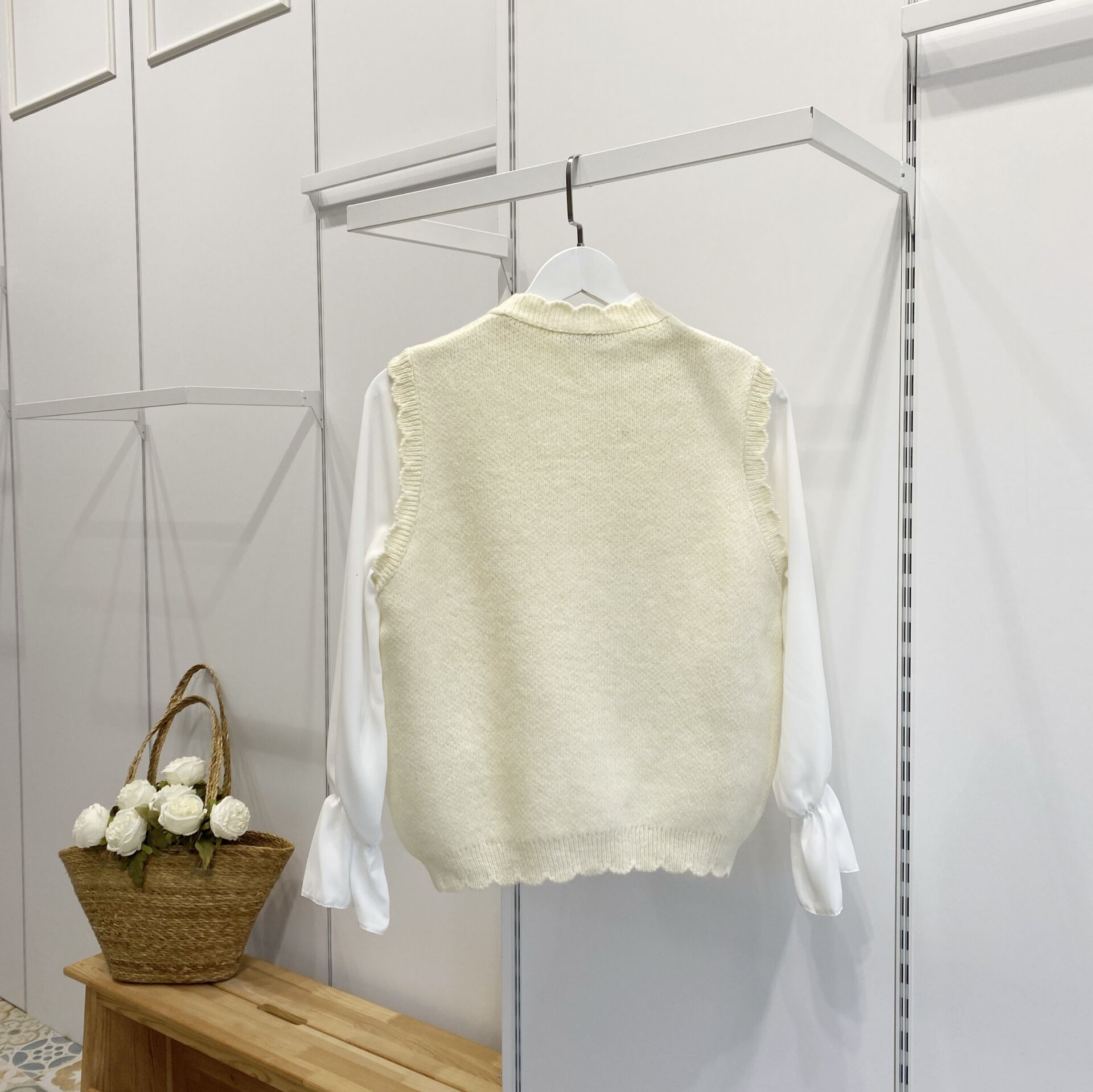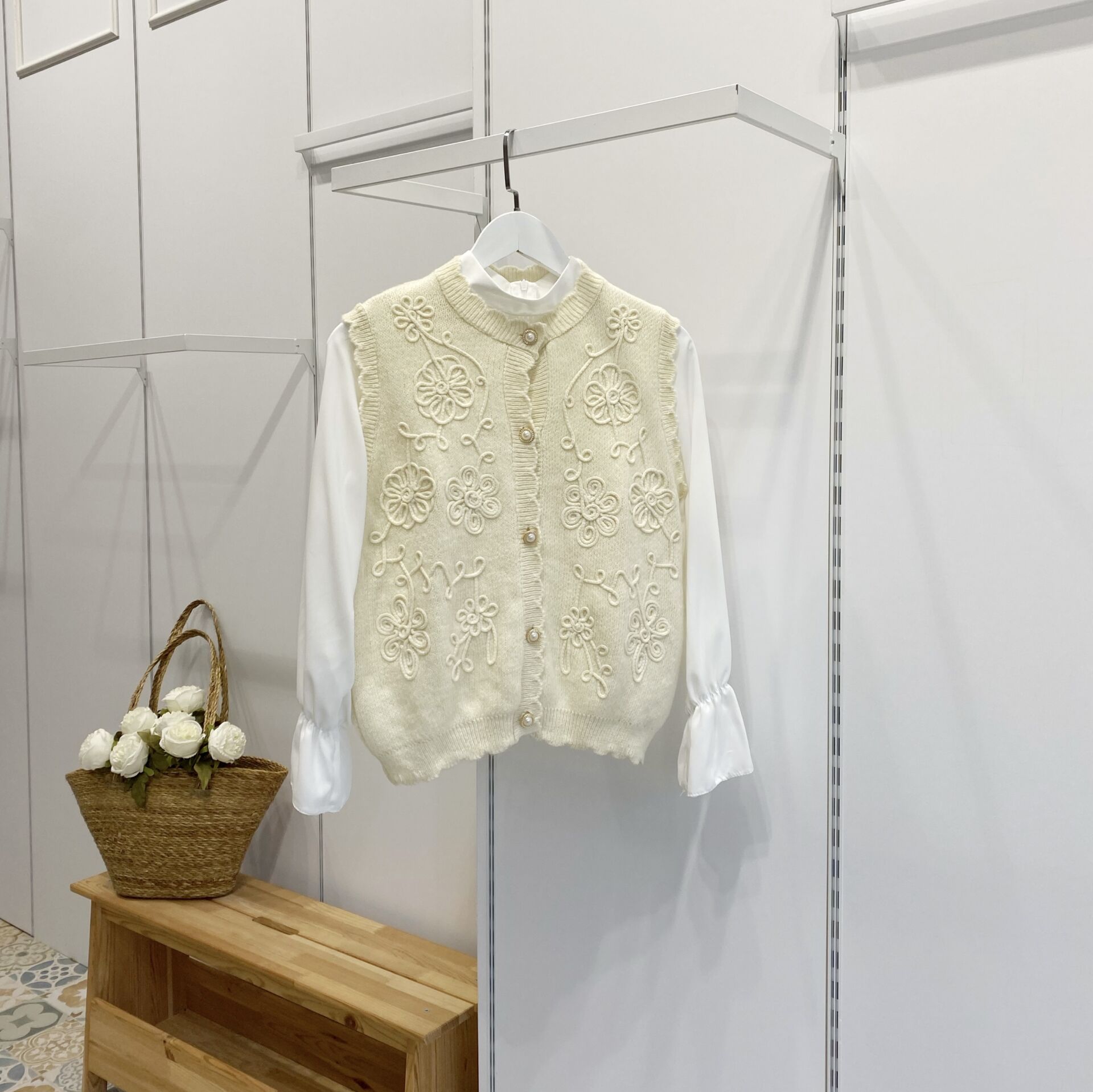 Ekru İnci Düğmeli Triko Yelek