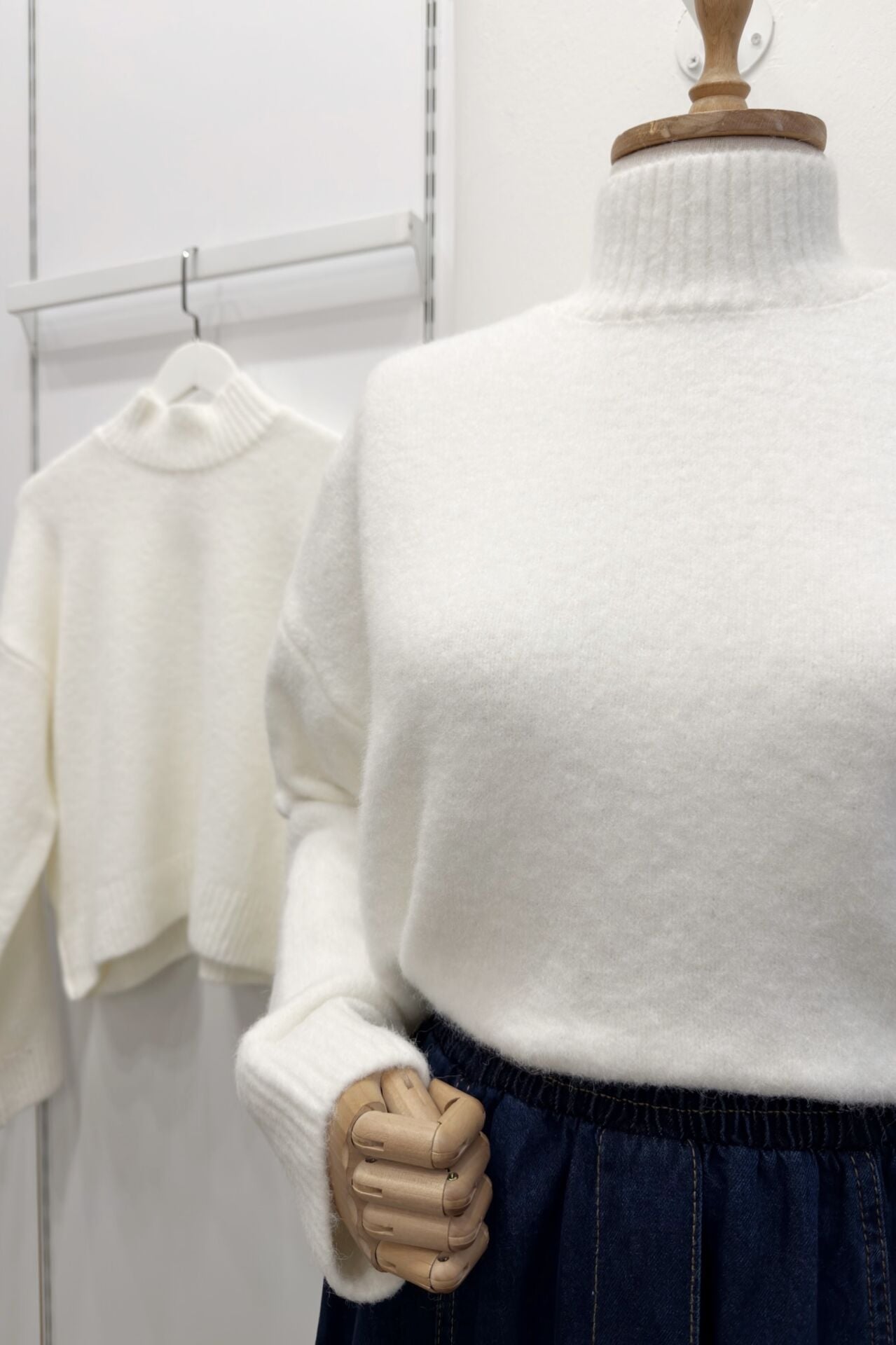 Ekru Yarım Boğazlı Mirette Kazak