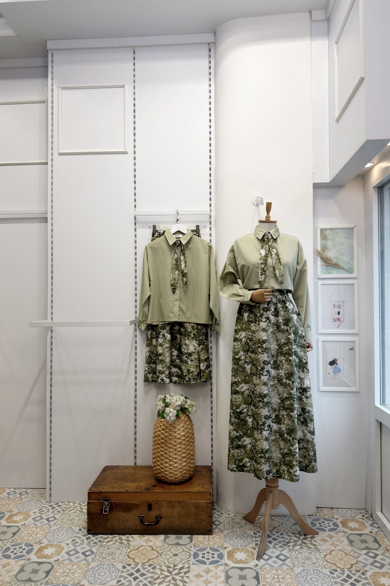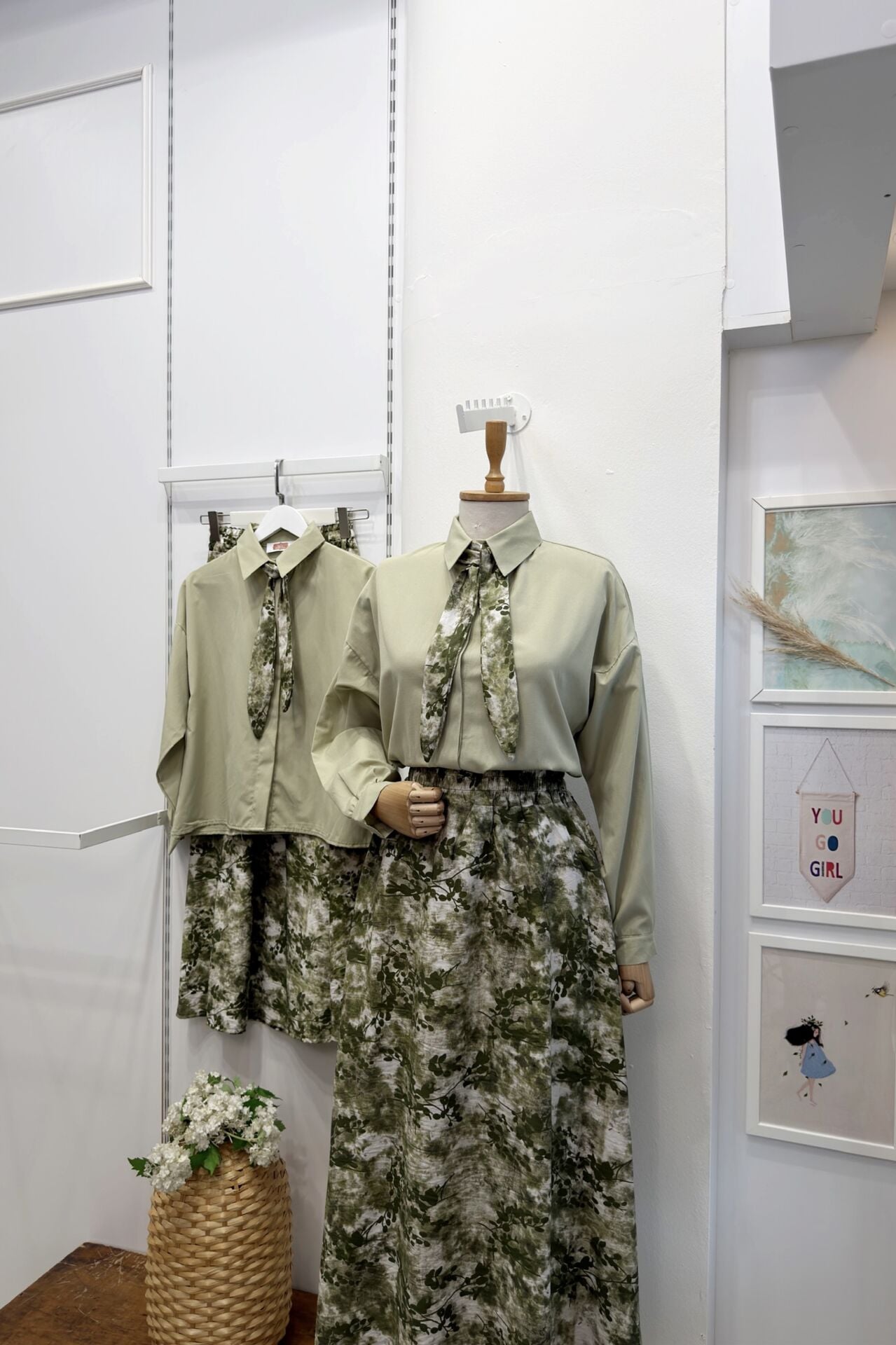 Eteği Çiçek Desenli Yeşil Aria Takım