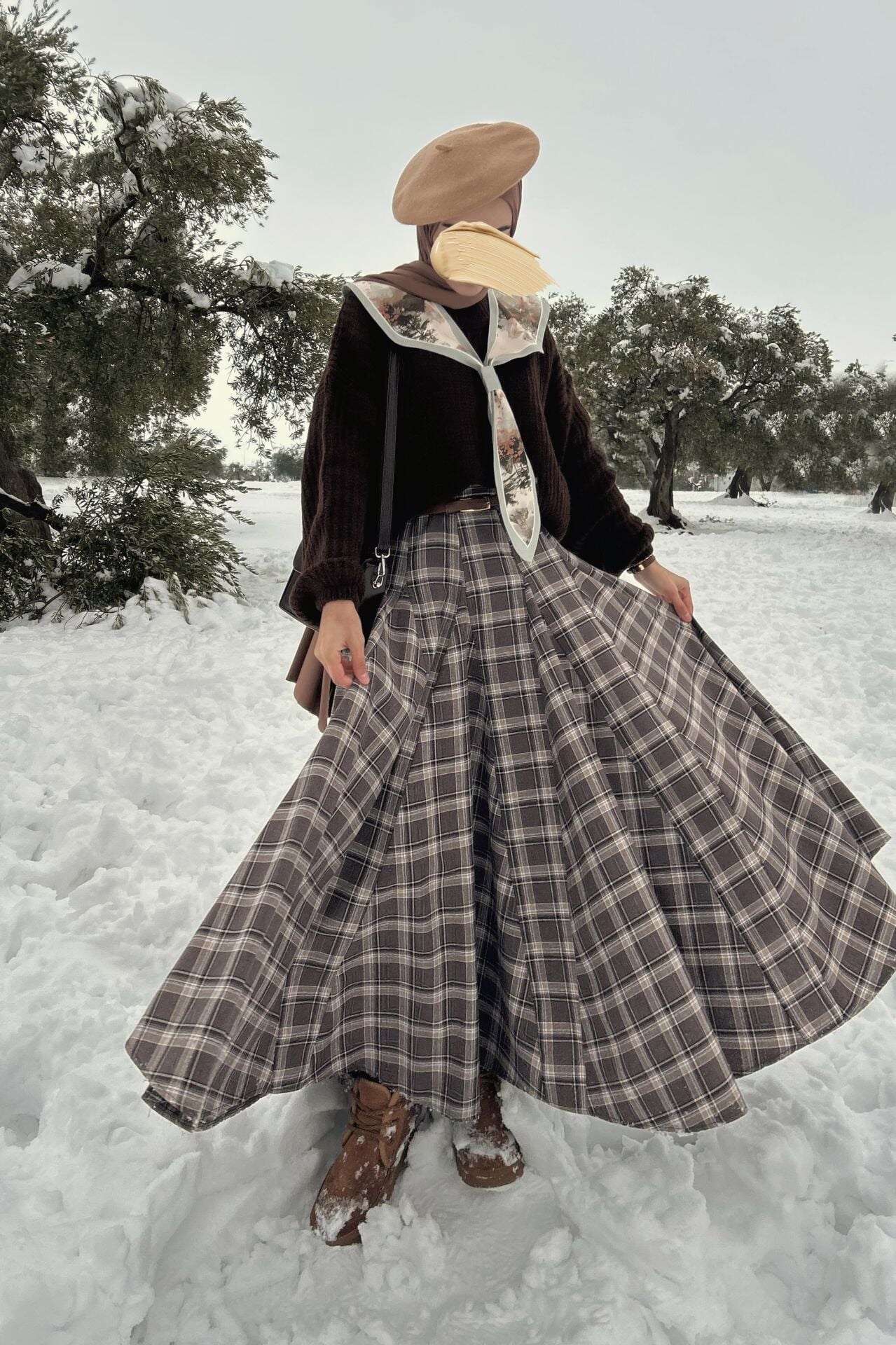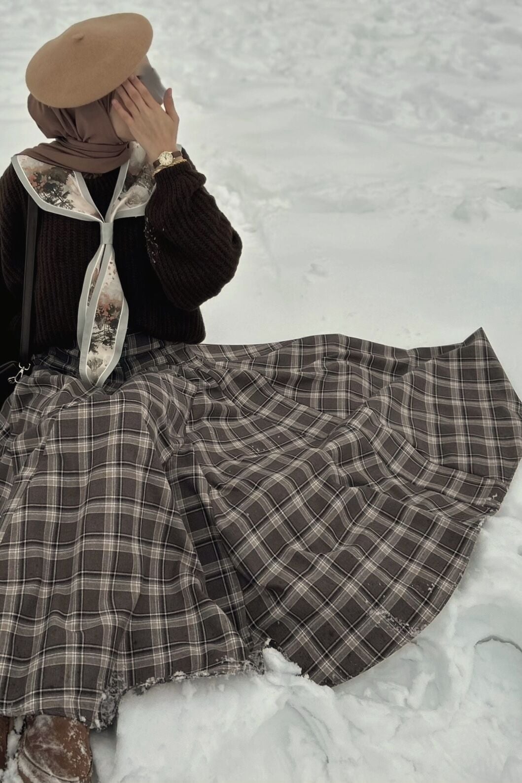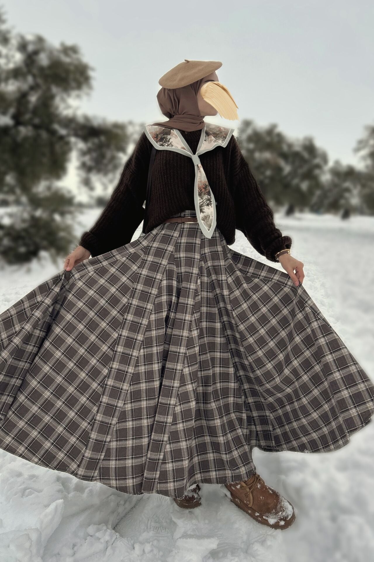 Faya Girls x Acı Kahve Deri Kemerli Ekoseli Grazia Etek