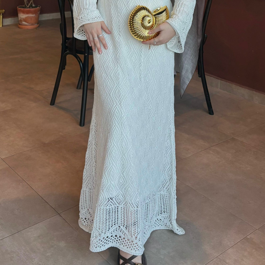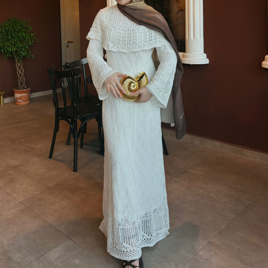Faya Girls x Beyaz Ajurlu Dream Örme Triko Elbise