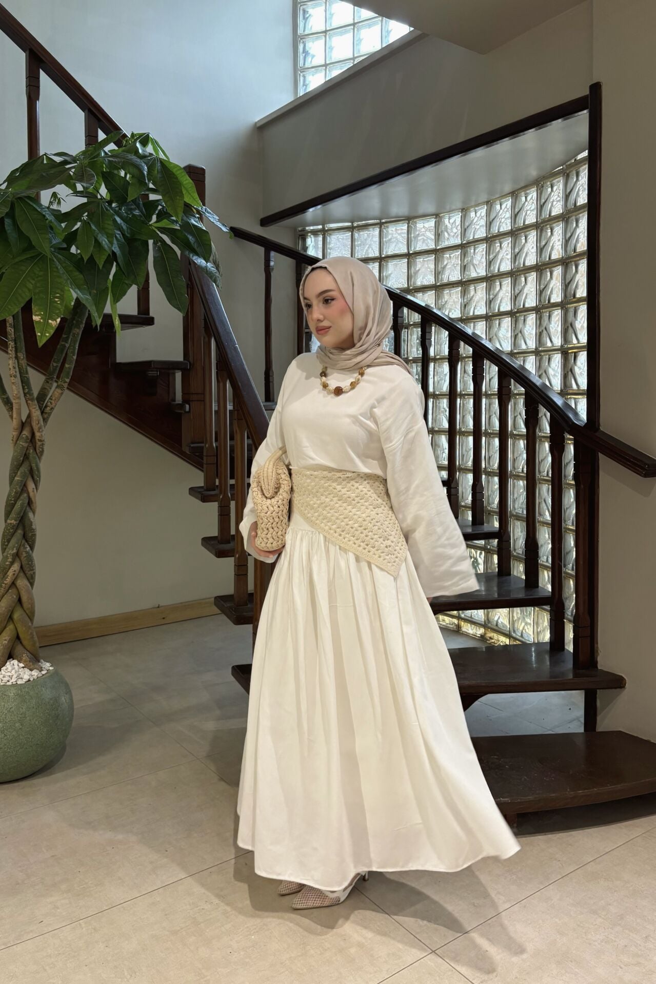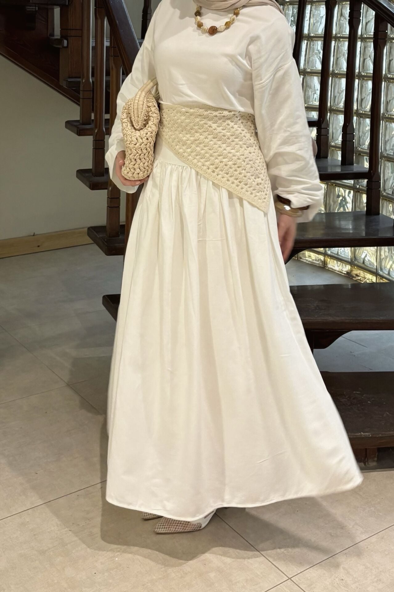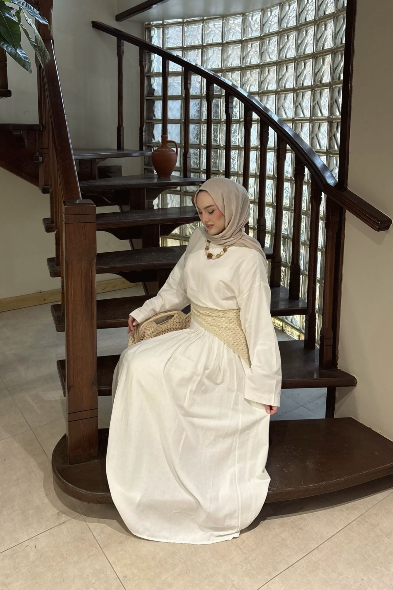 Faya Girls x Beyaz Bel Korsajlı Keten Takım