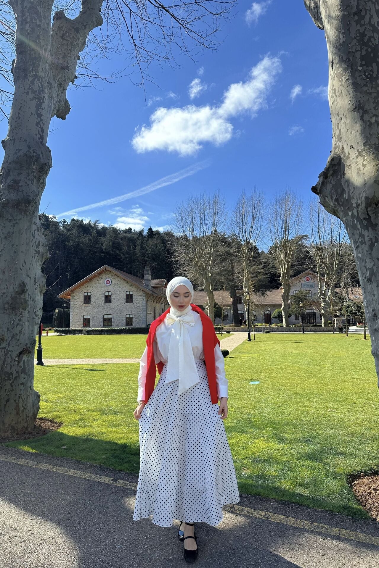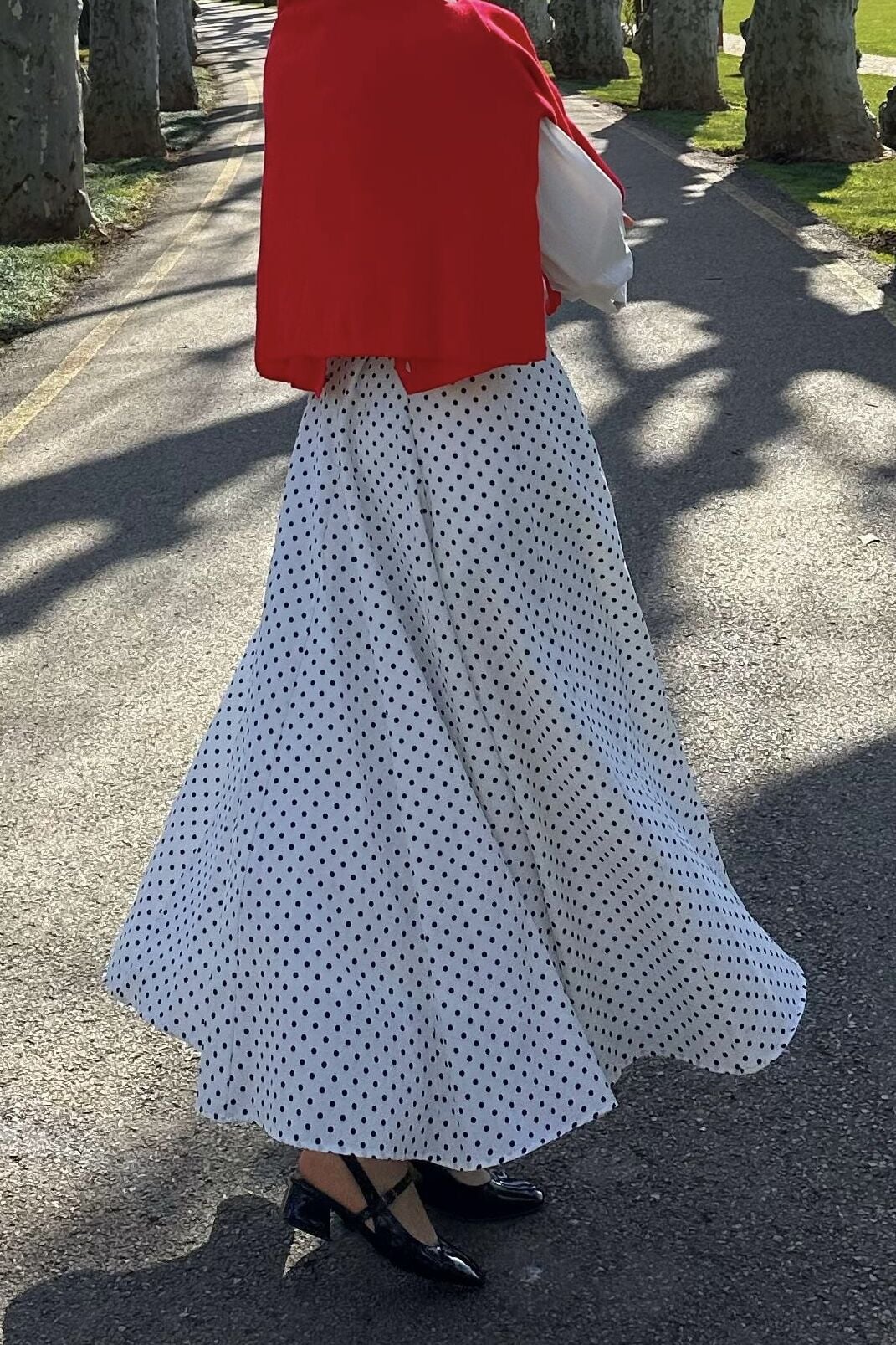 Faya Girls x Beyaz Puantiye Desenli Vintage Etek