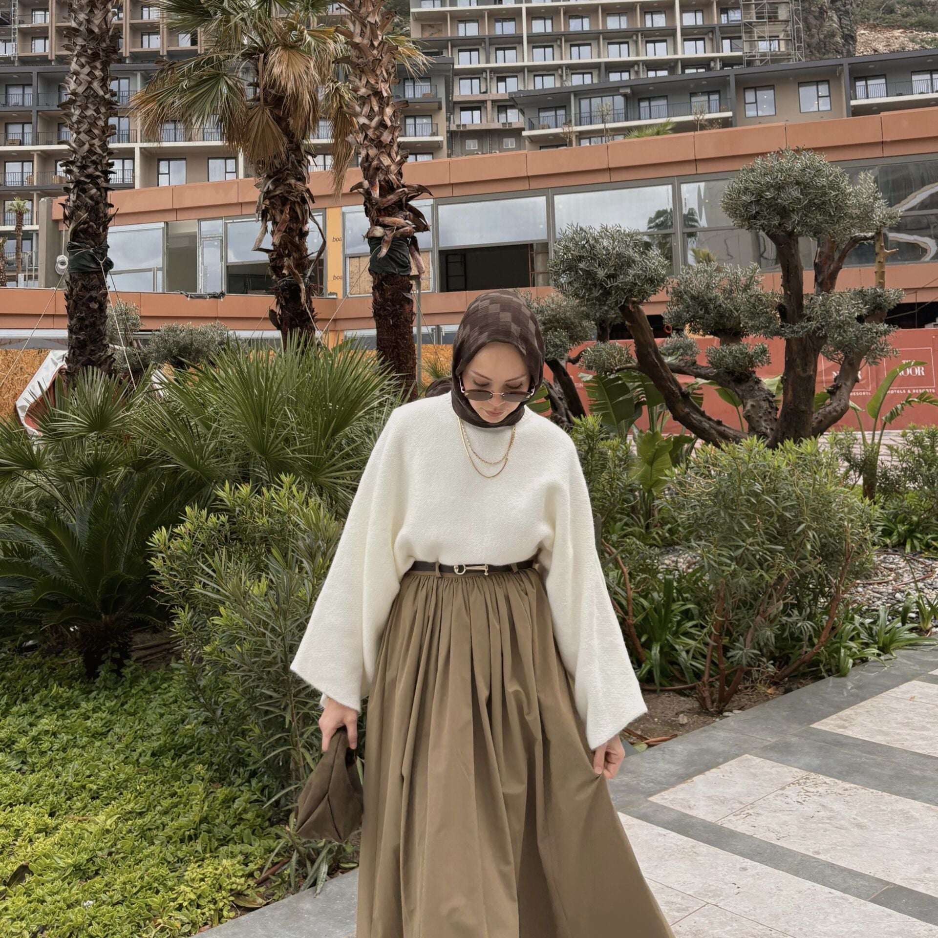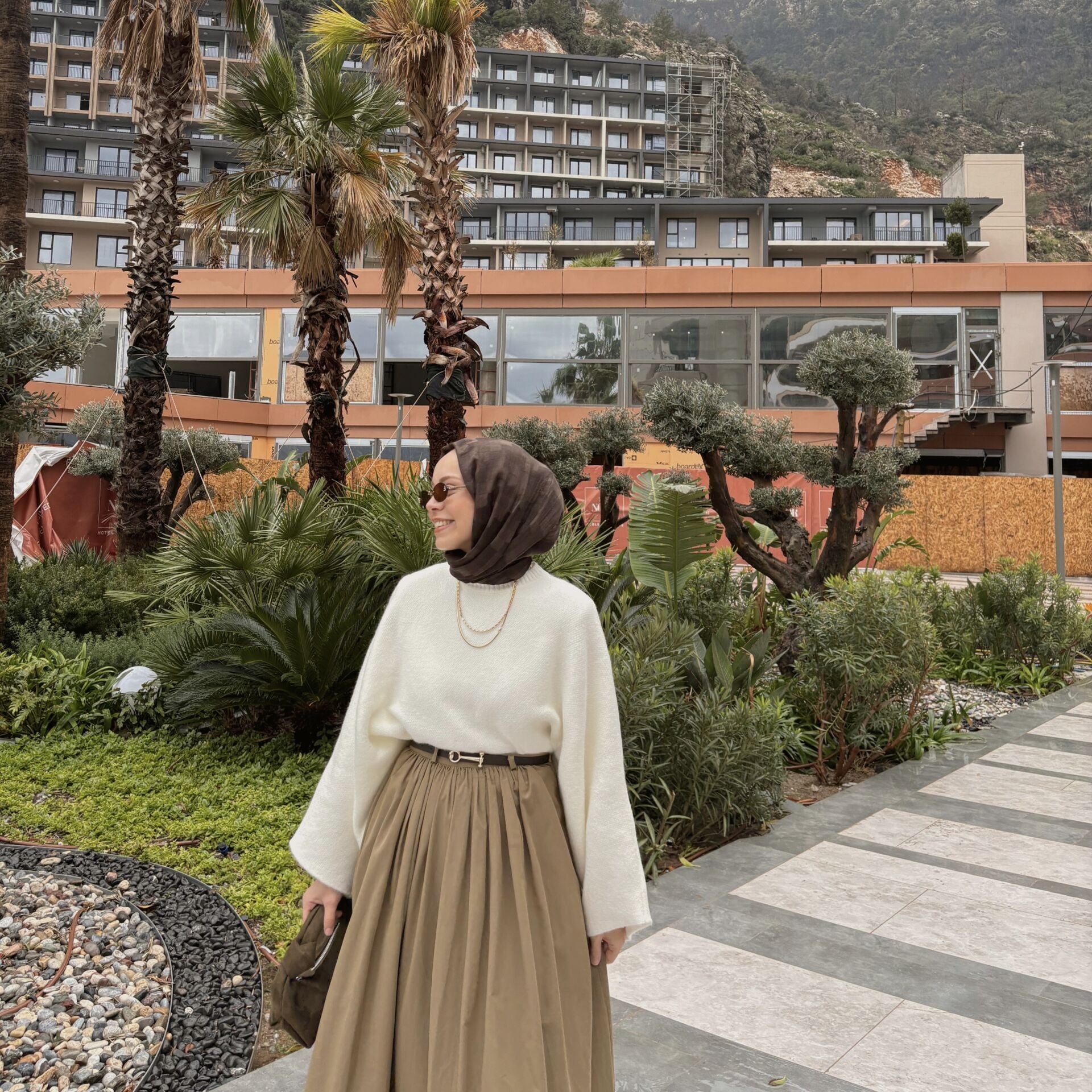 Faya Girls x Camel Kemerli Sık Pileli Etek