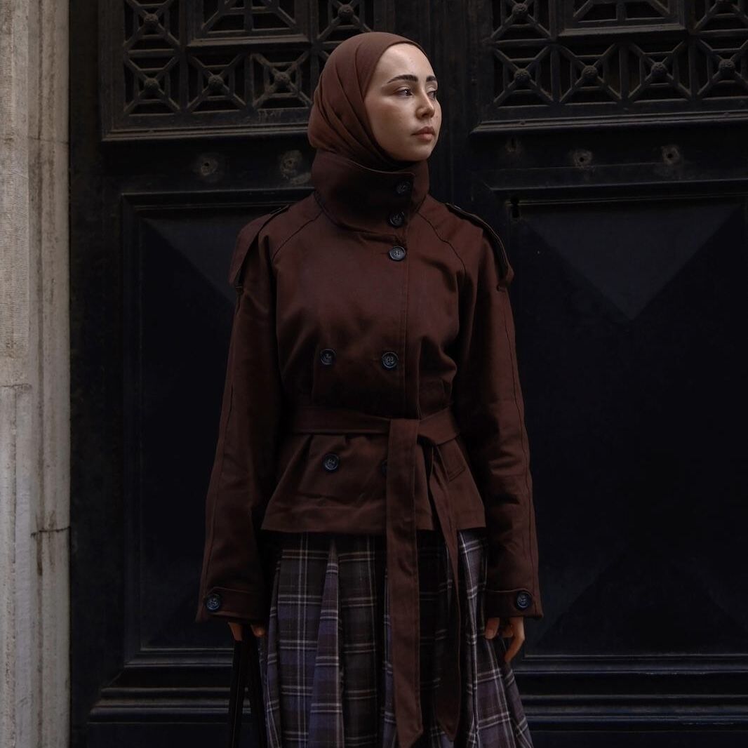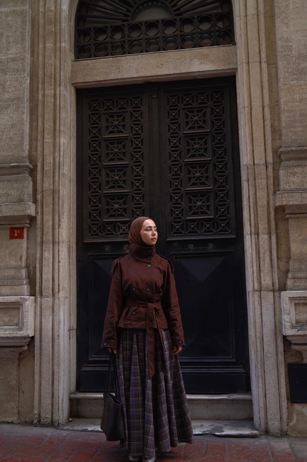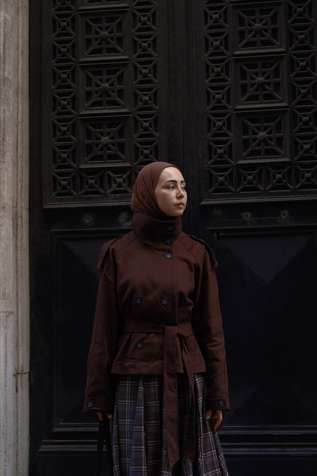 Faya Girls x Kahverengi Balıkçı Yaka Kuşaklı Kısa Trençkot