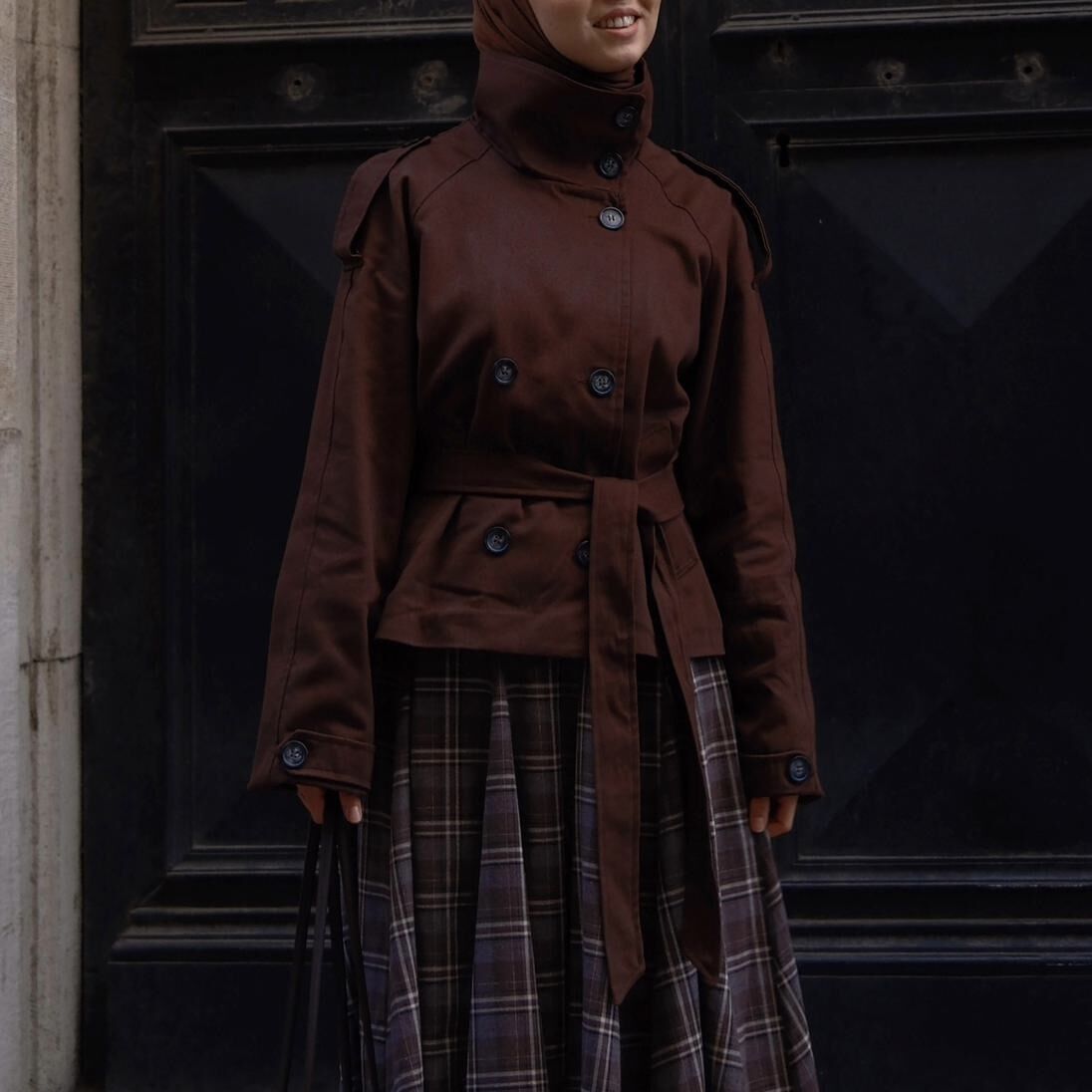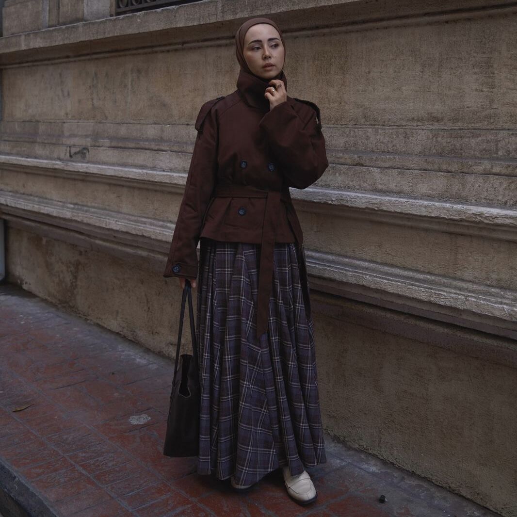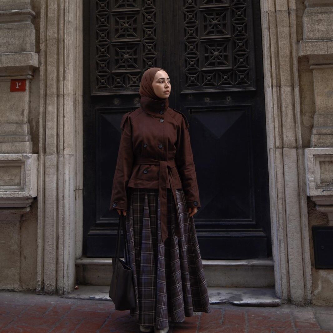 Faya Girls x Kahverengi Balıkçı Yaka Kuşaklı Kısa Trençkot