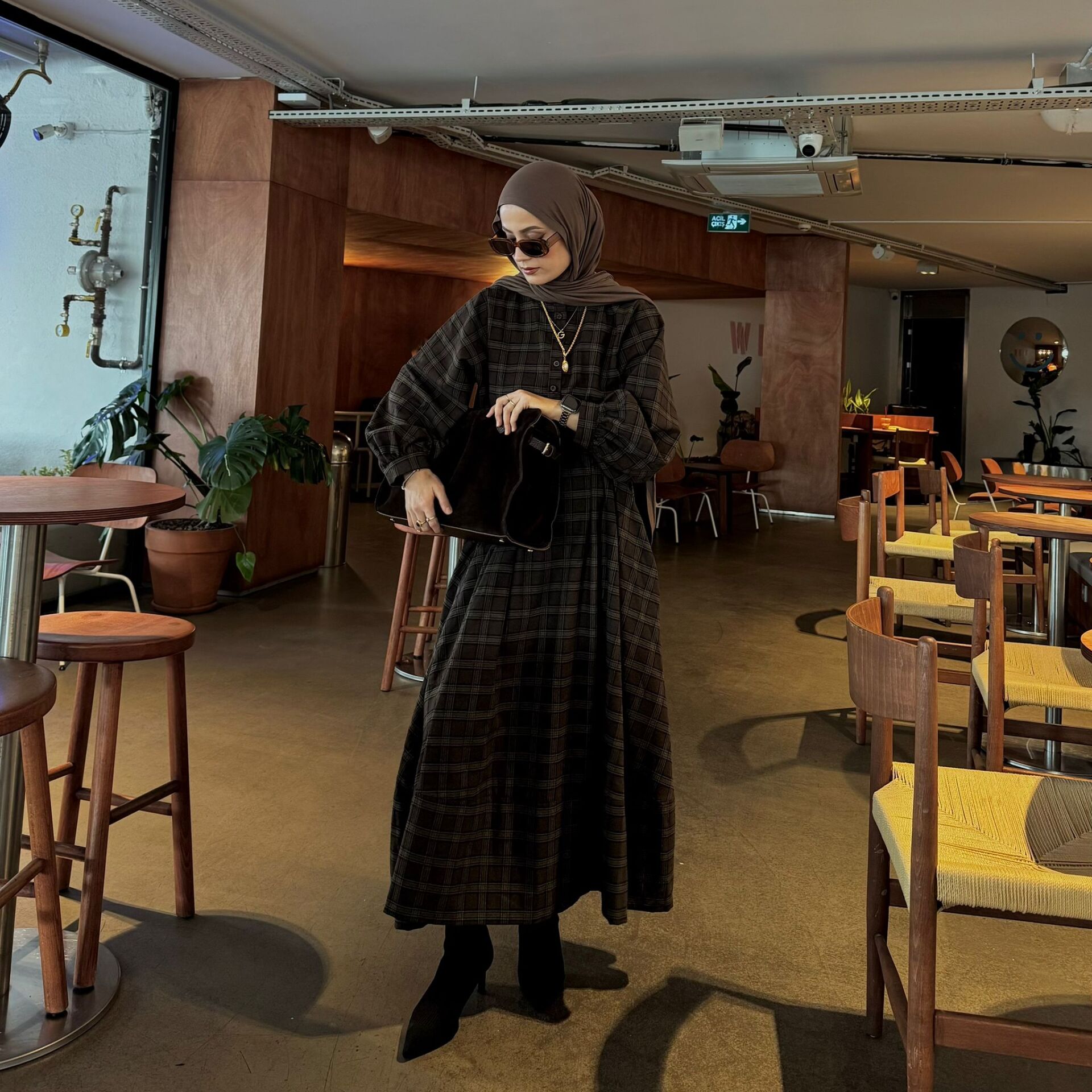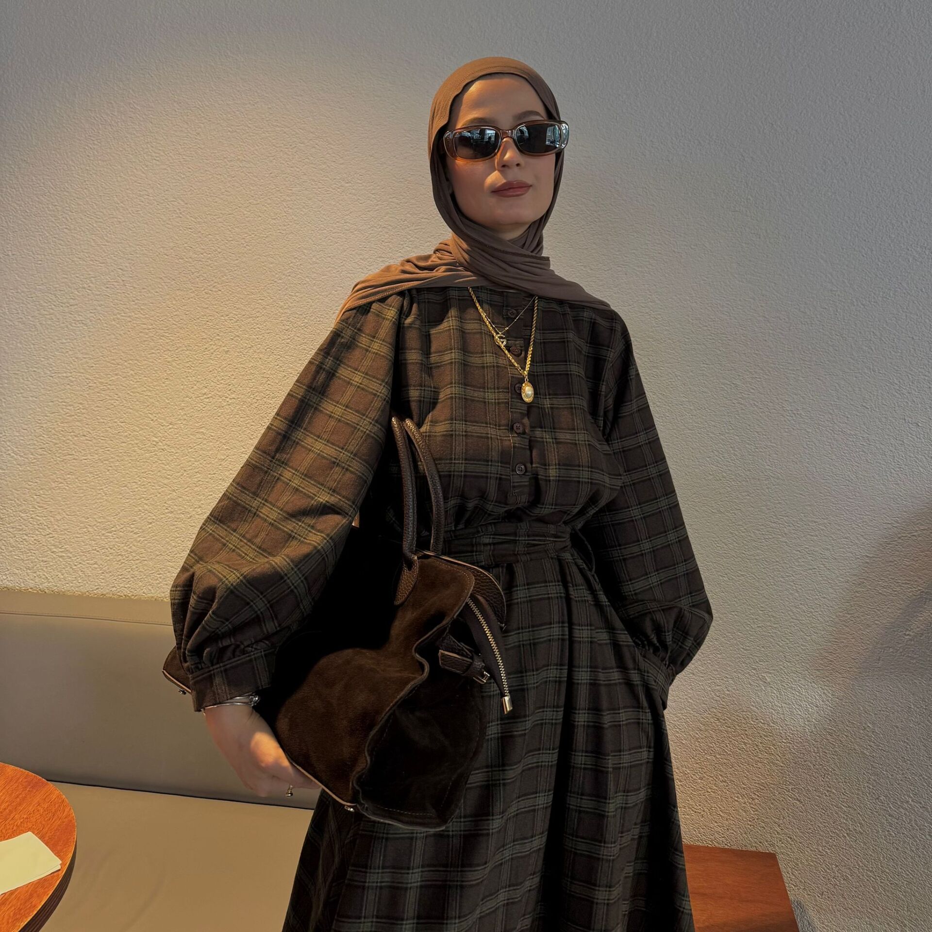 Faya Girls x Kahverengi Ekoseli Sweety Elbise