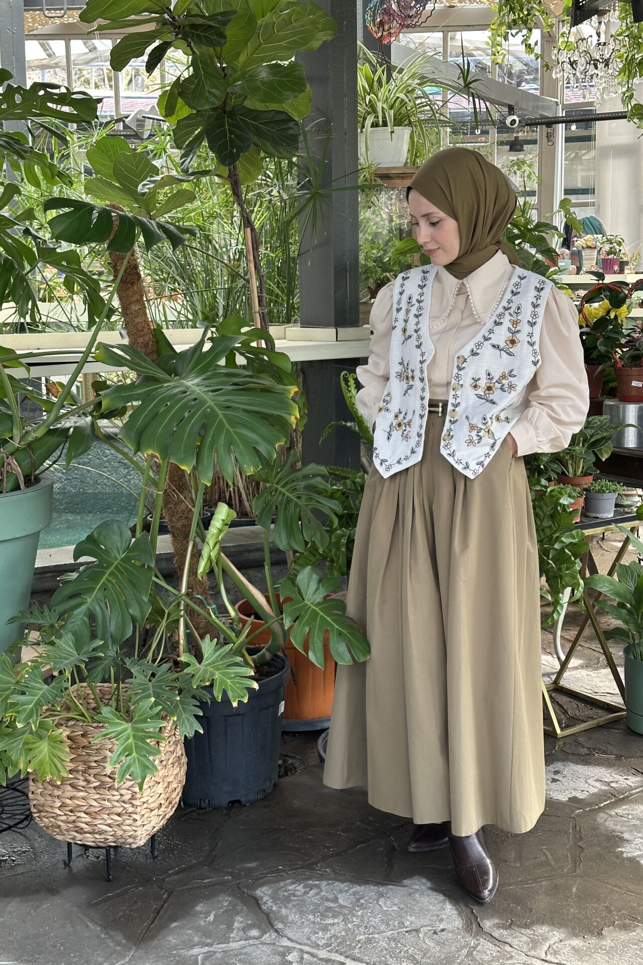 Faya Girls x Papatya Nakışlı Keten Yelek