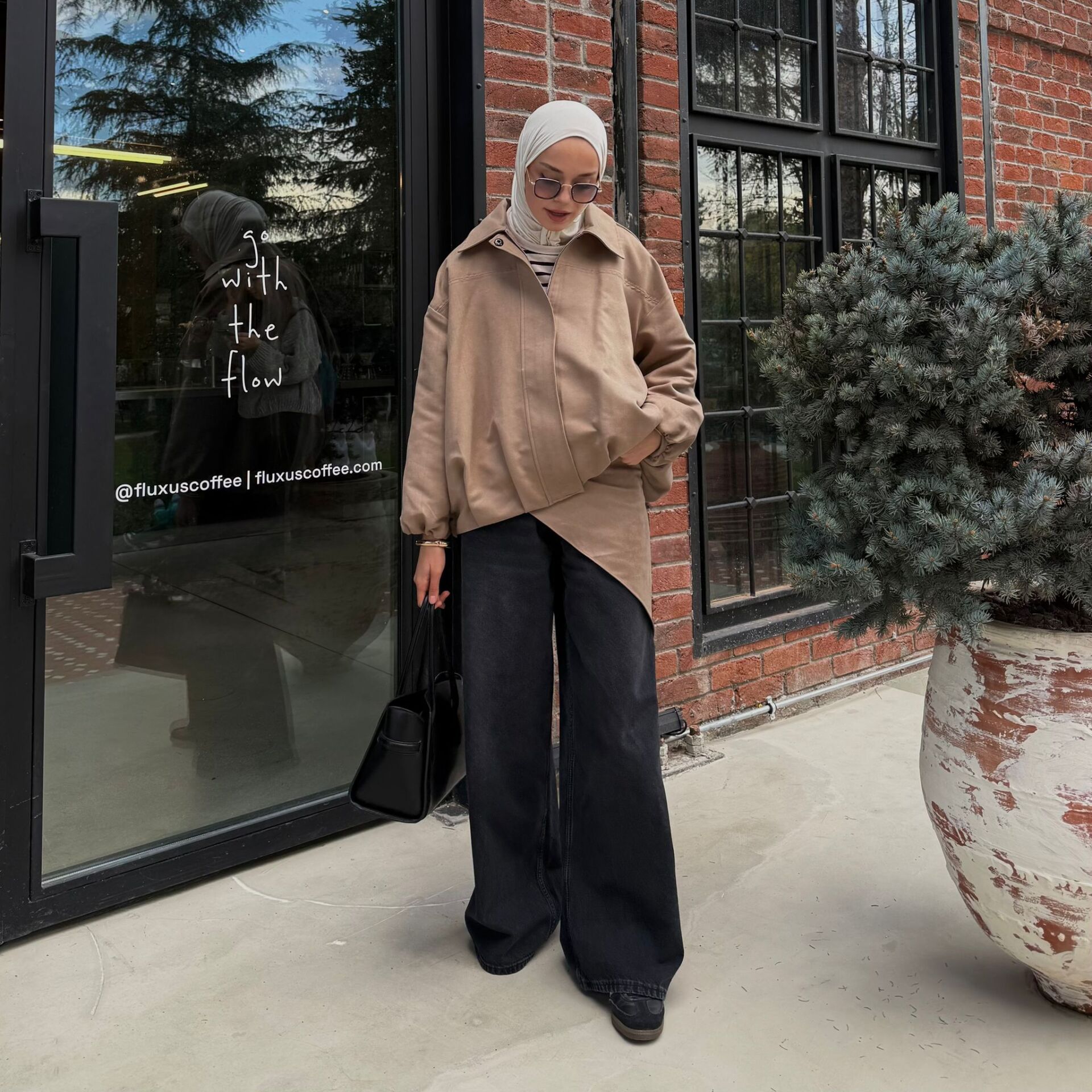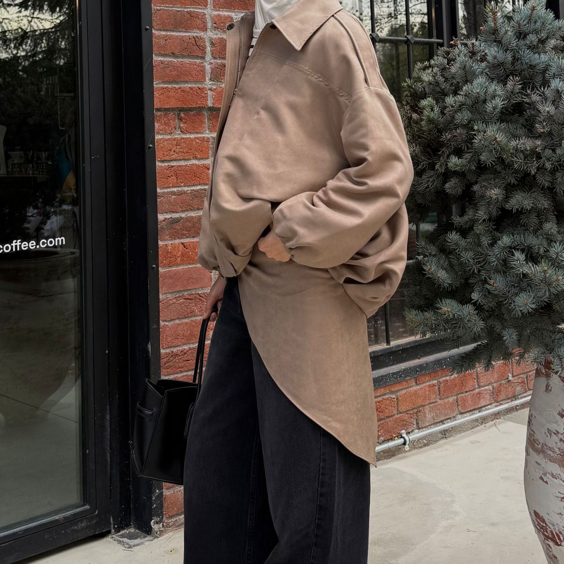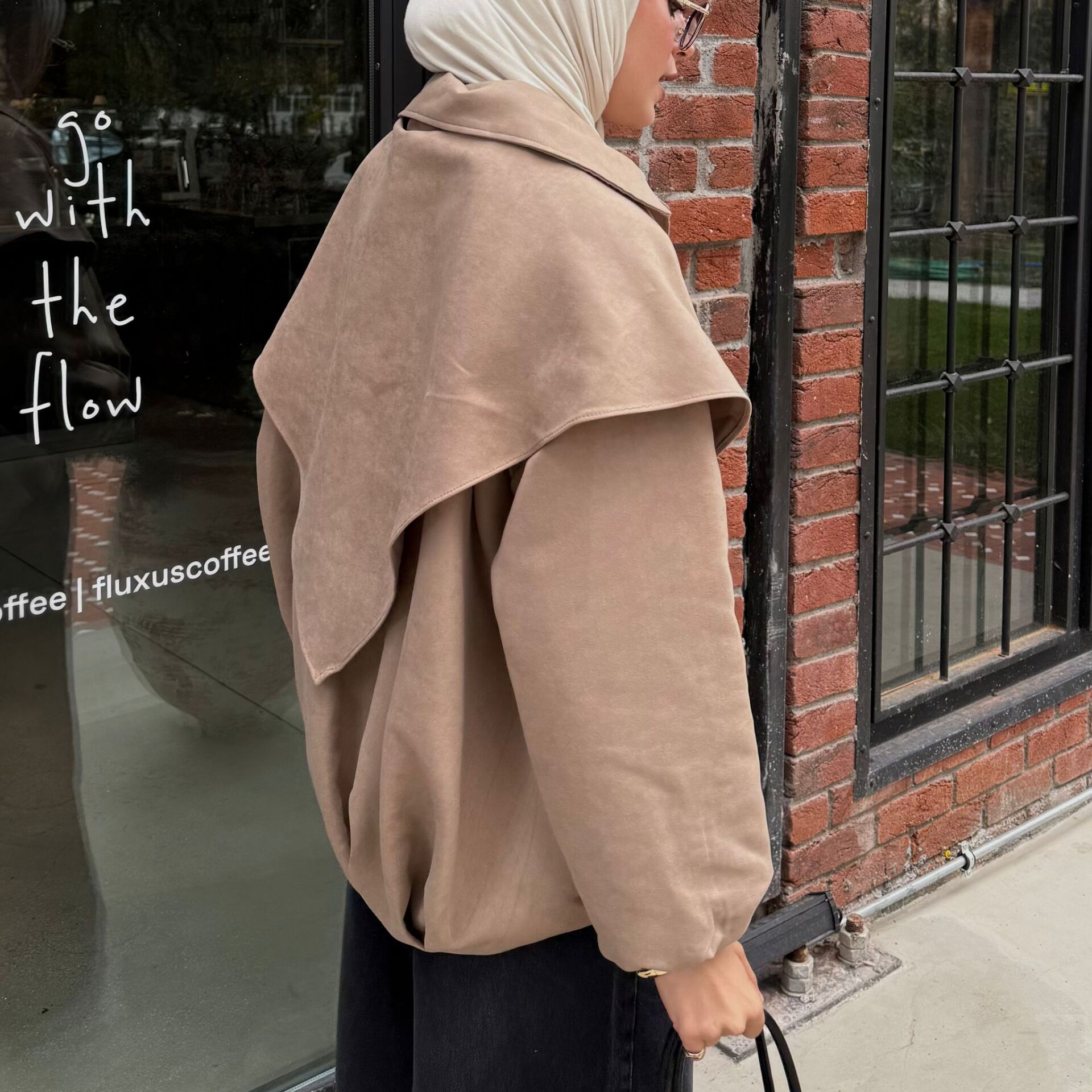 Faya Girls x Vizon Fular Detaylı Süet Bomber Ceket