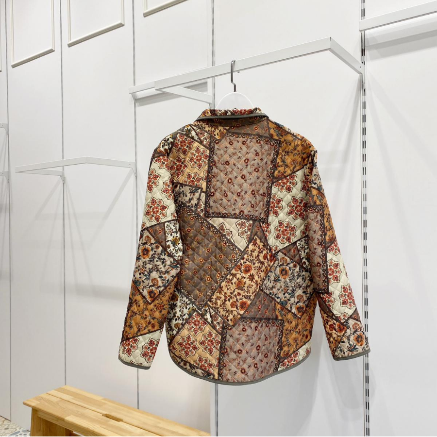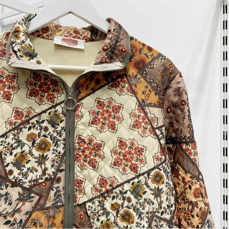 Fermuarlı Camel Patchwork Desenli Kapitone Ceket