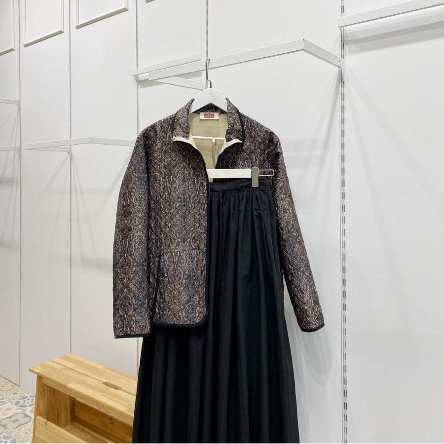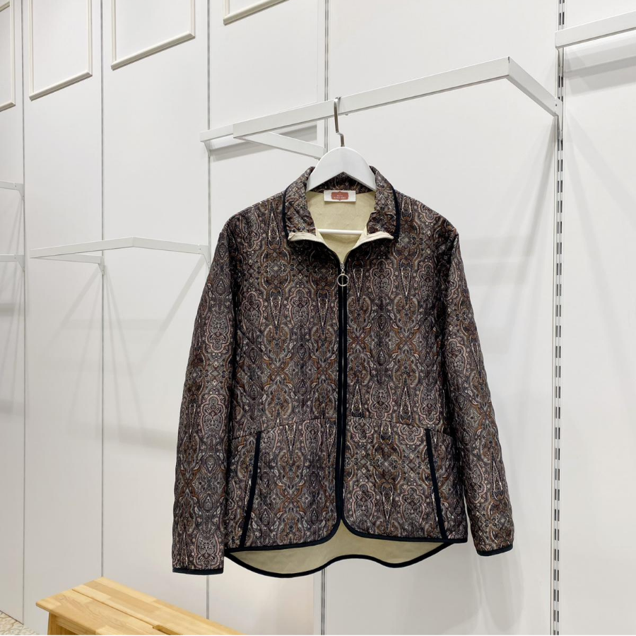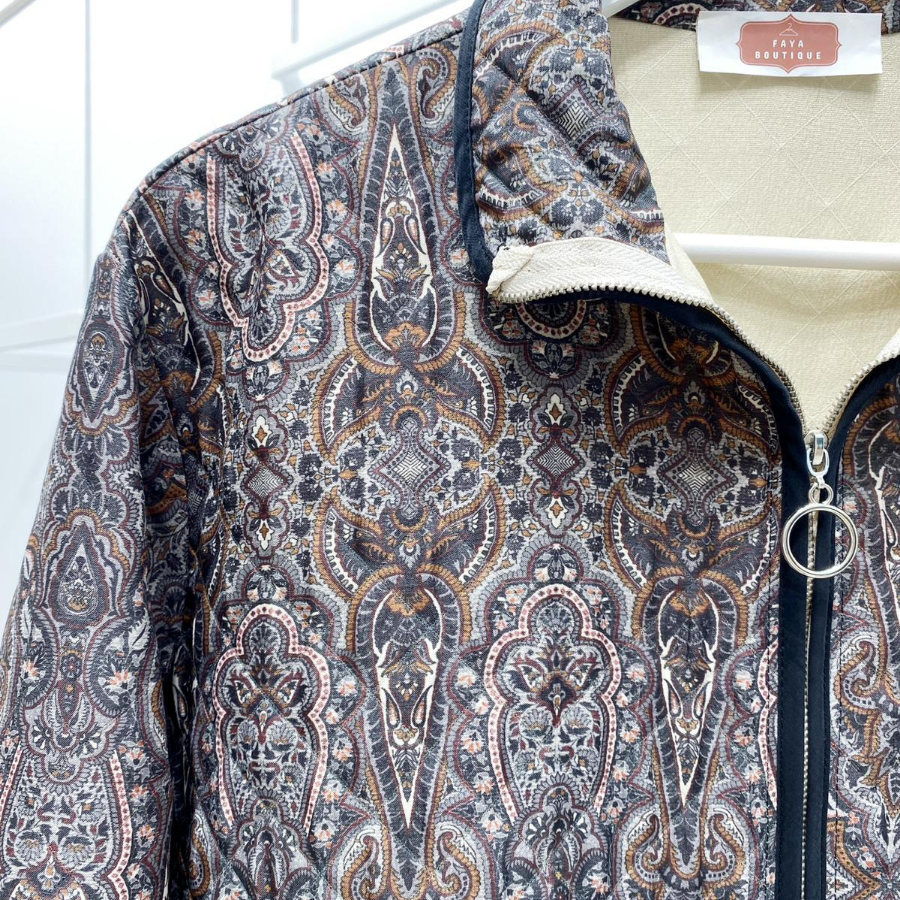 Fermuarlı Gri Etnik Desenli Kapitone Ceket
