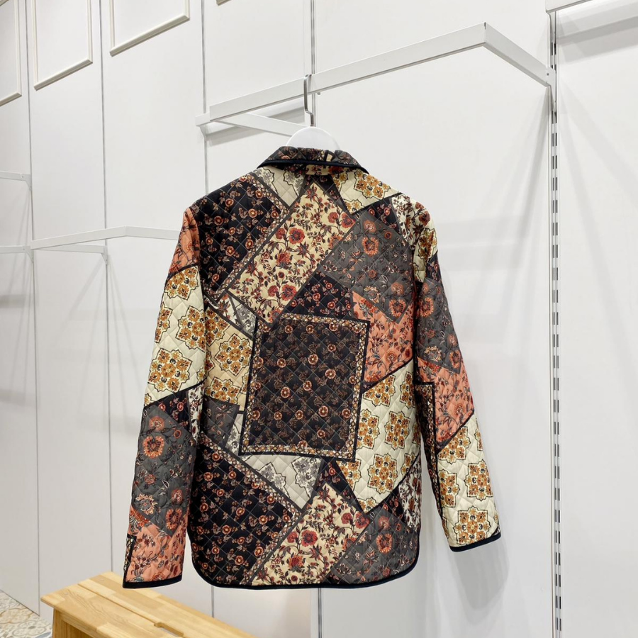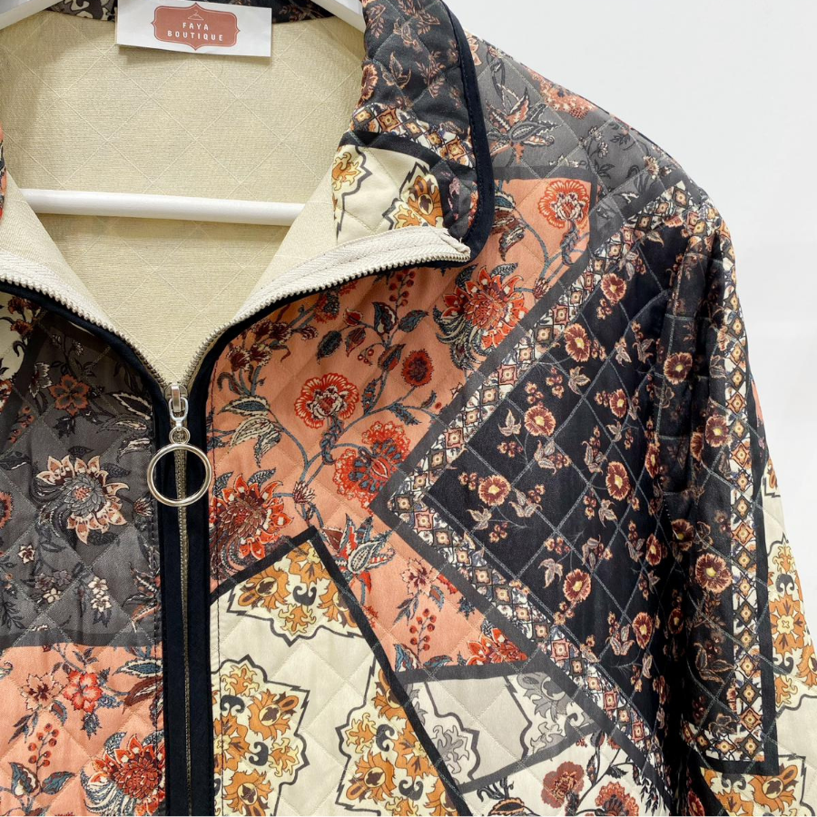 Fermuarlı Turuncu Siyah Patchwork Desenli Kapitone Ceket