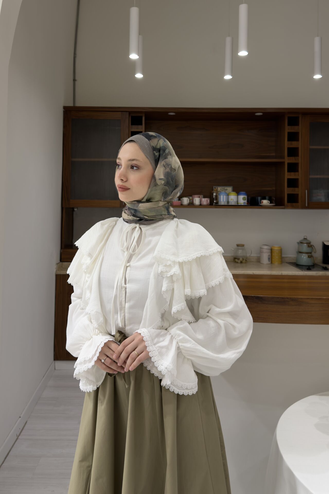 Fisto Volanlı Beyaz Lunella Gömlek