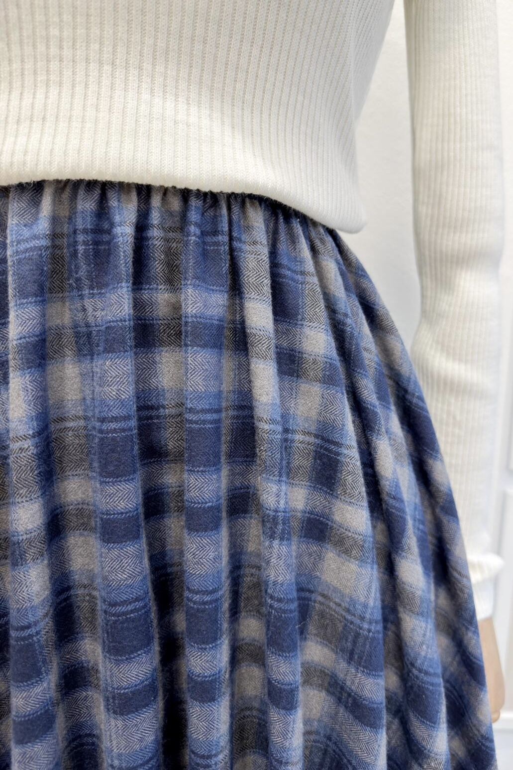 Gri Lacivert Beli Lastikli Ekose Desenli Kloş Etek