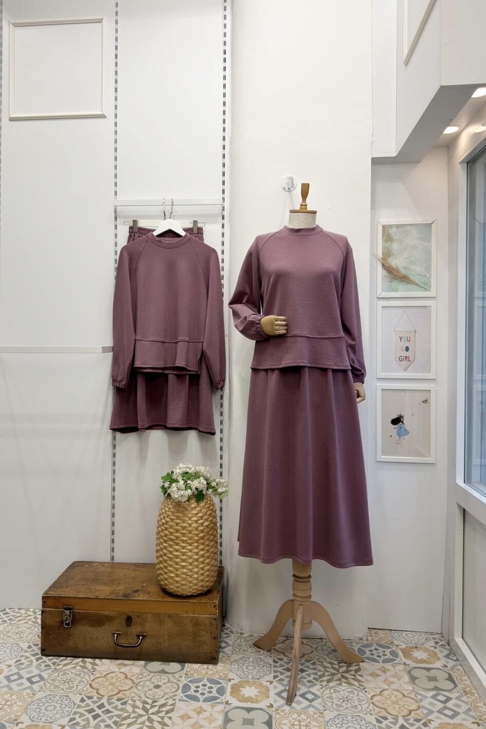 Gül Kurusu Plaid Sweatli Etekli Takım