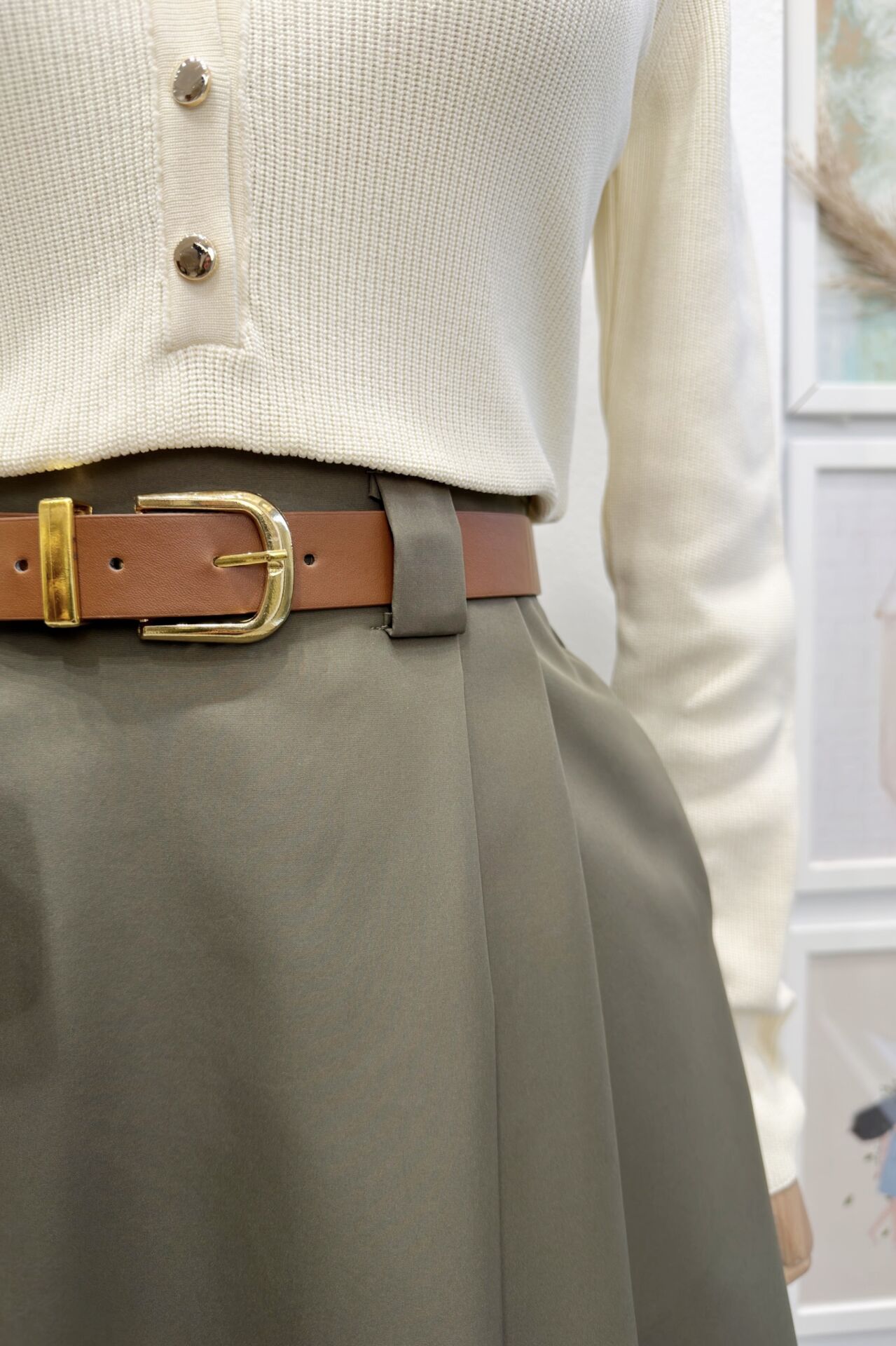 Haki Yeşili Kemerli Arain Etek