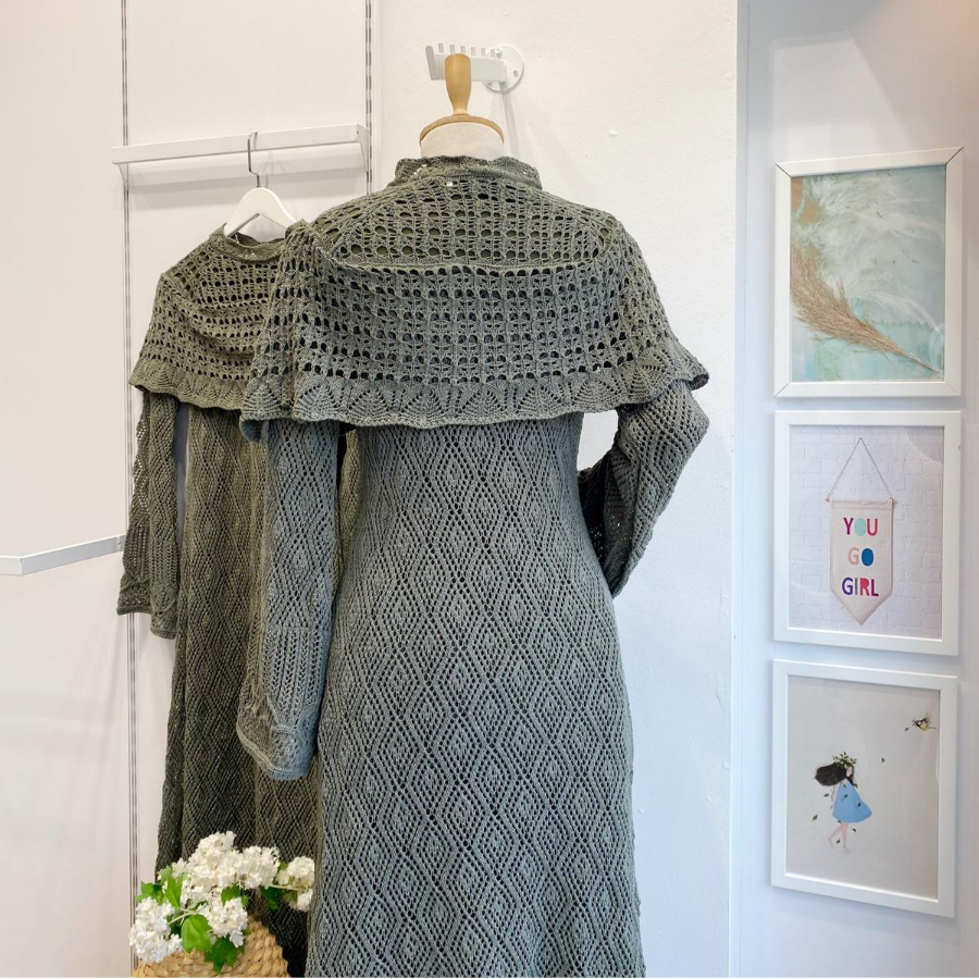 Haki Yeşili Ajurlu Dream Örme Triko Elbise
