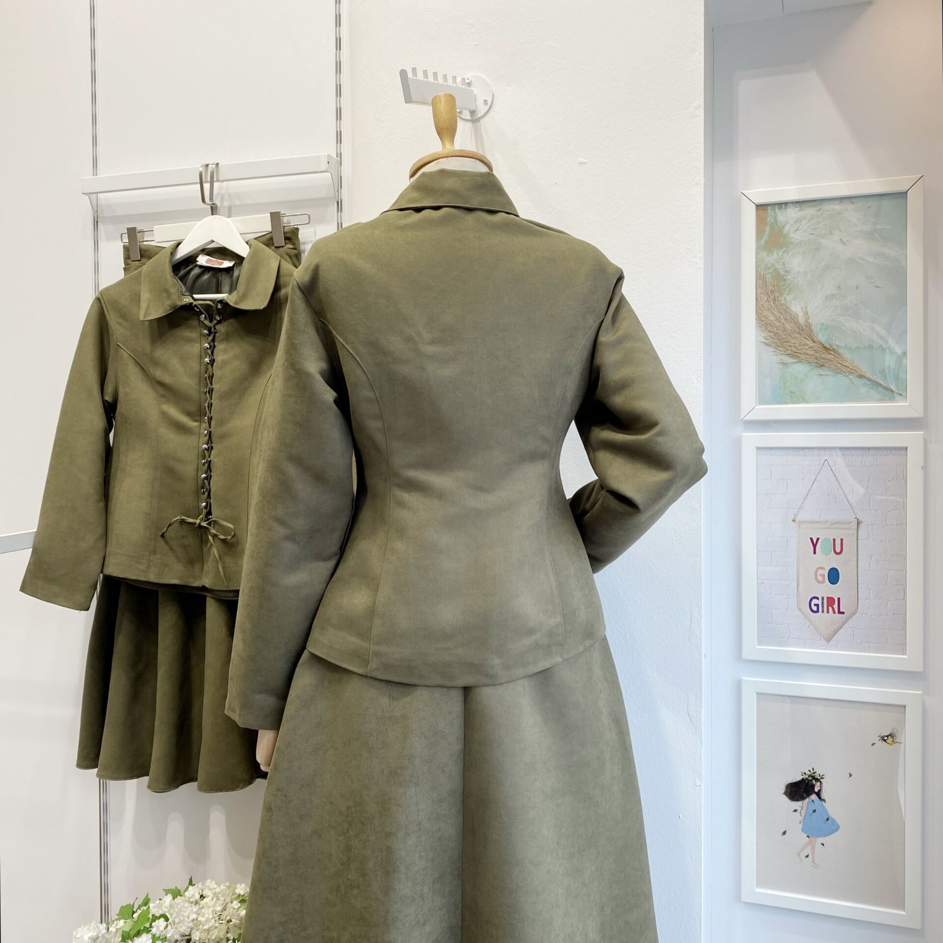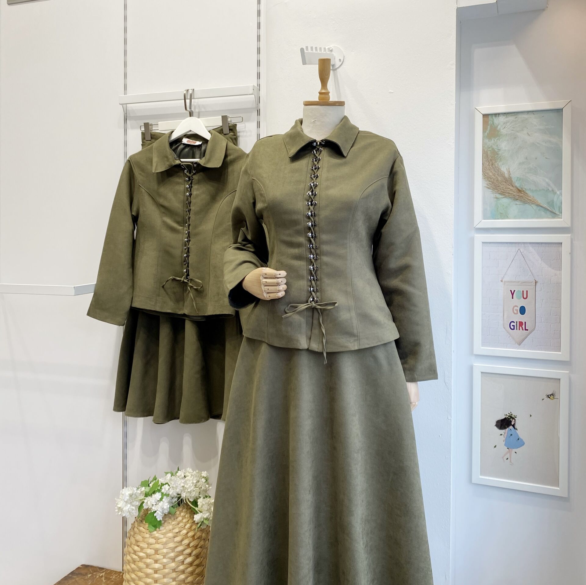 Haki Yeşili Bağcık Detaylı Süet Takım