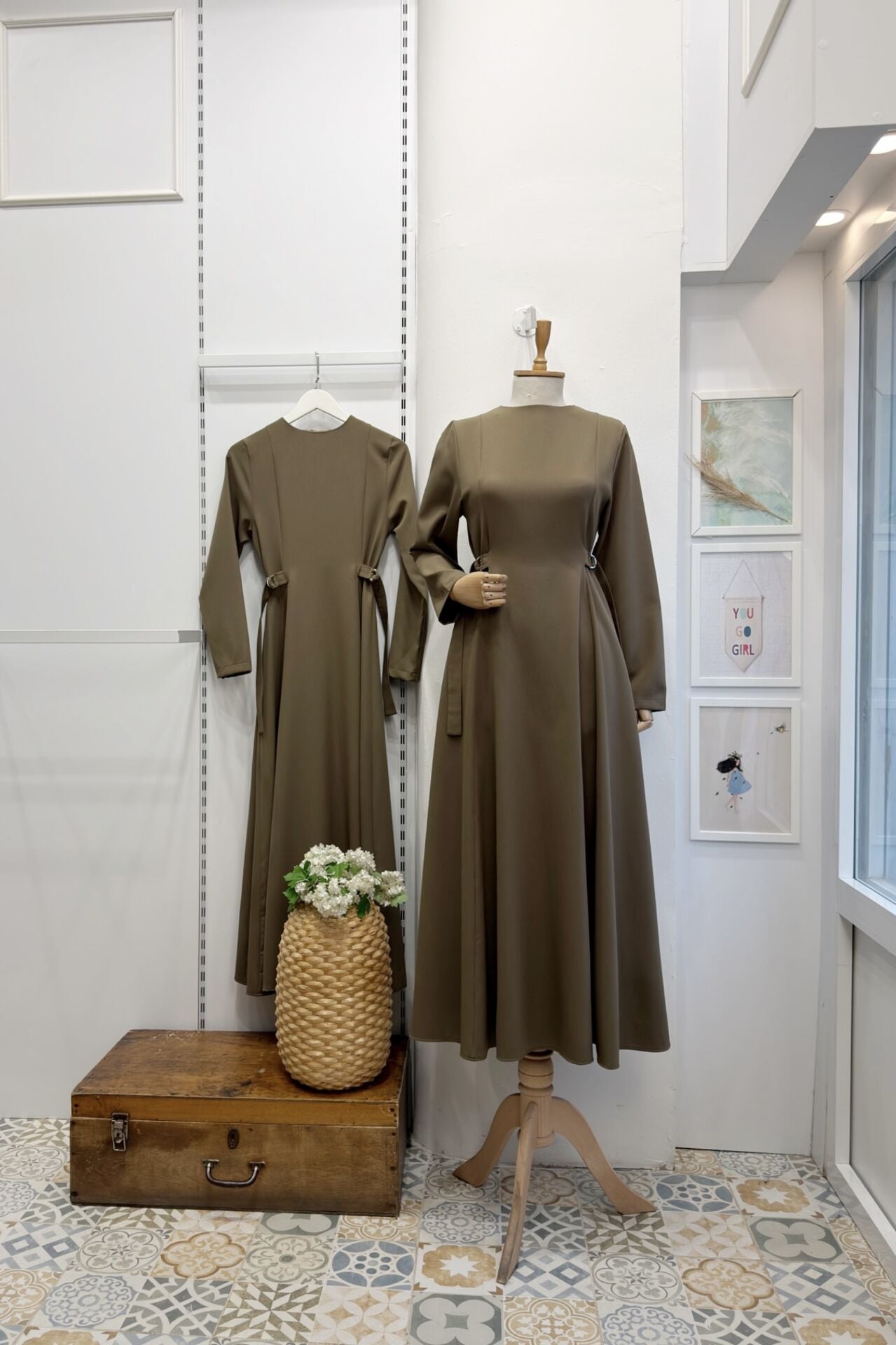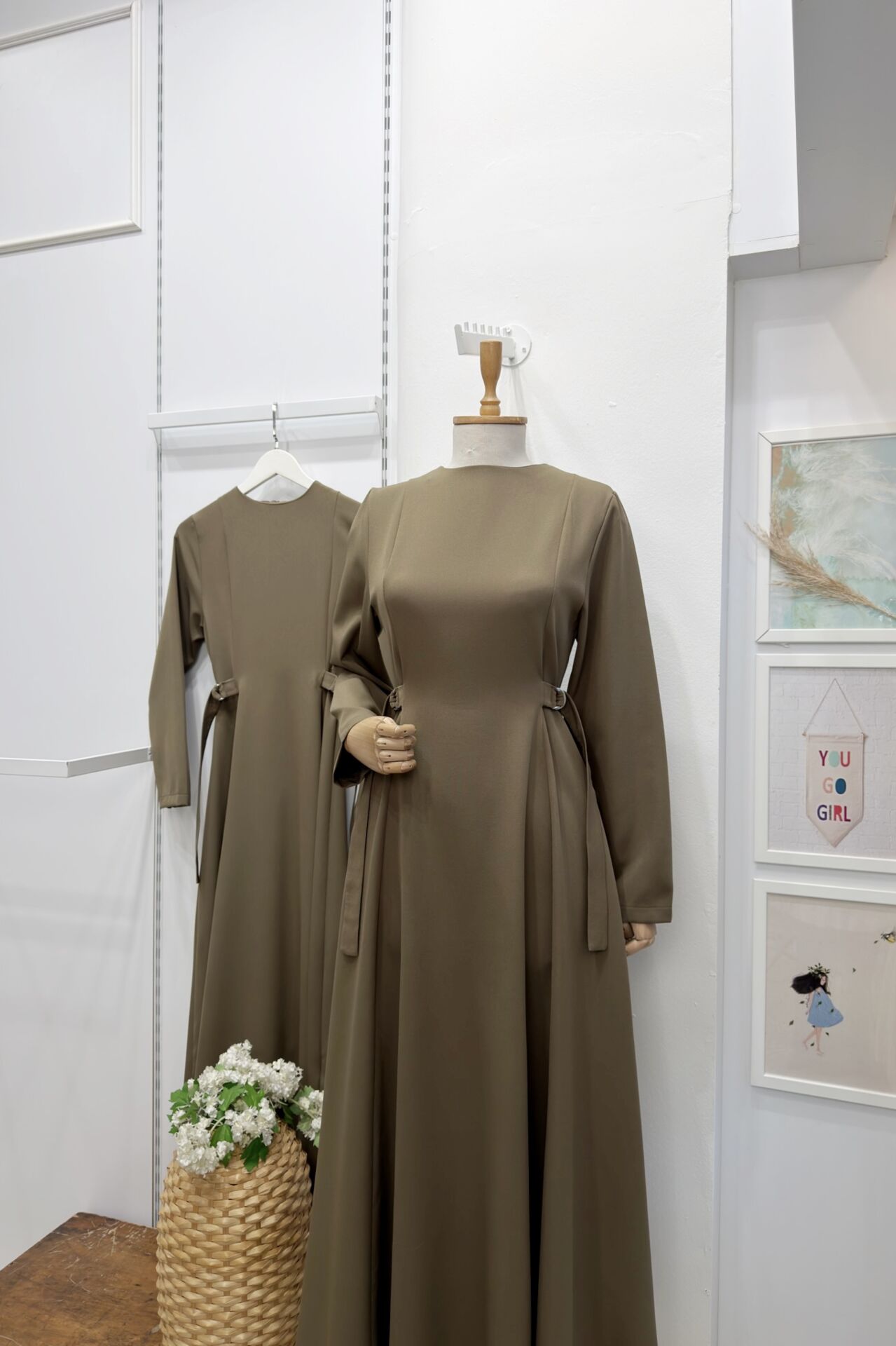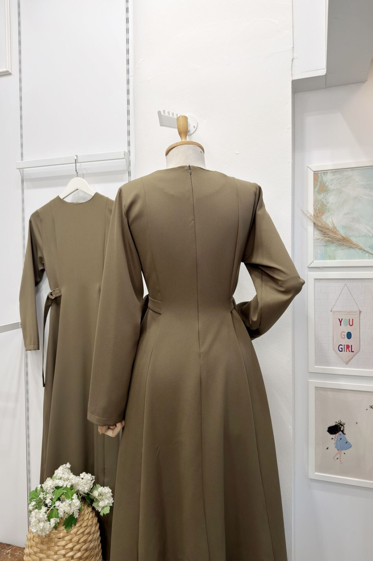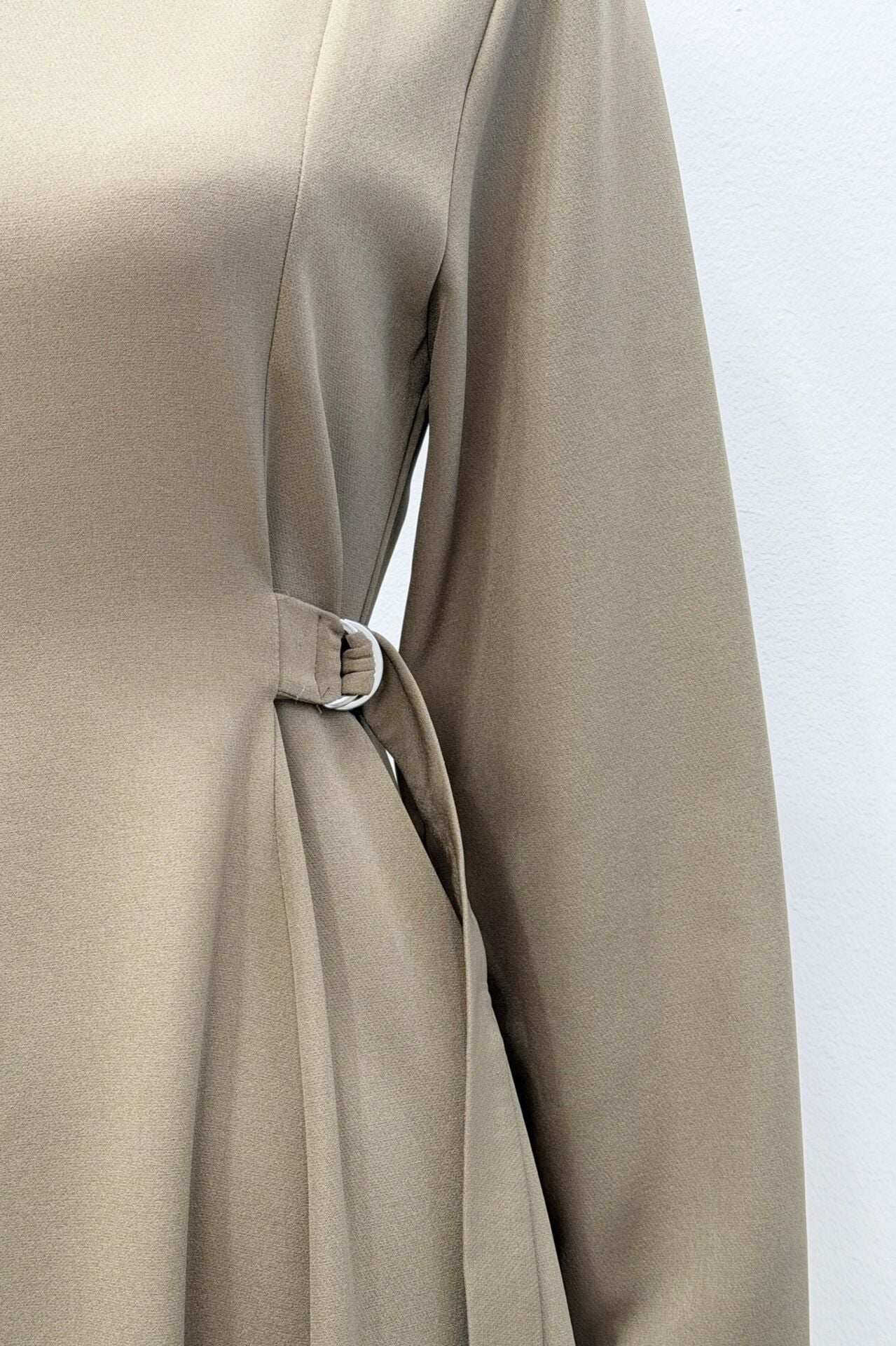Haki Yeşili Beli Toka Detaylı Bruna Elbise