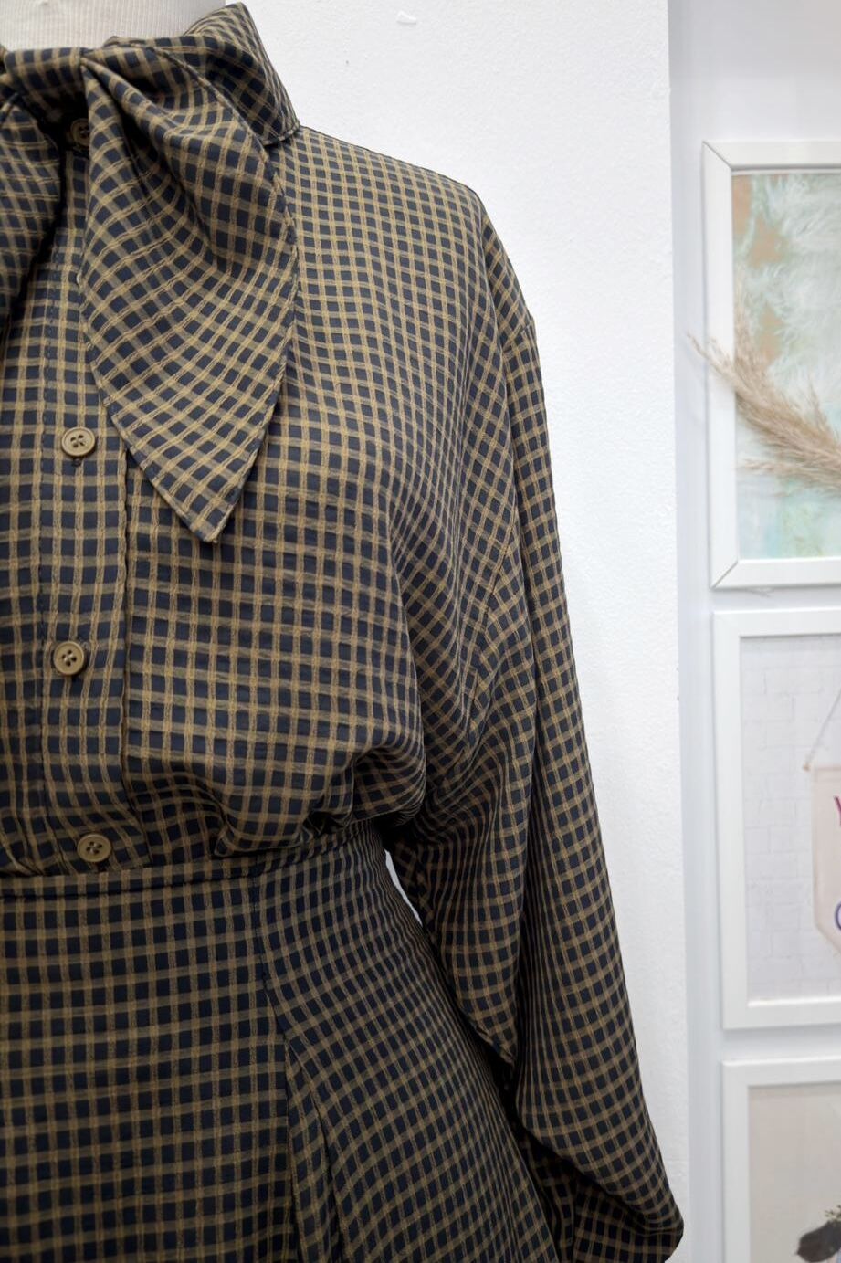 Haki Yeşili Fular Yaka Detaylı Pötikareli Rowen Takım