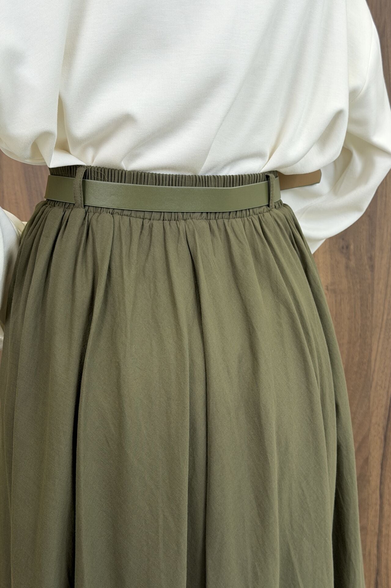 Haki Yeşili Ceinture Kemerli Keten Etek