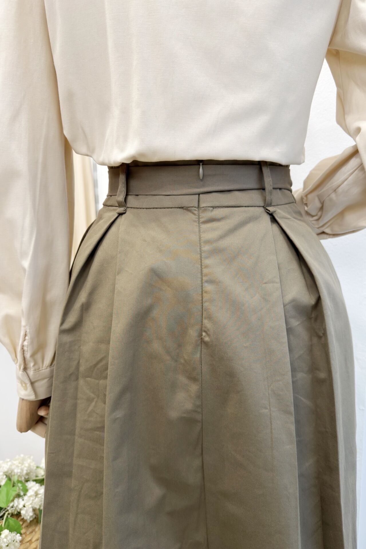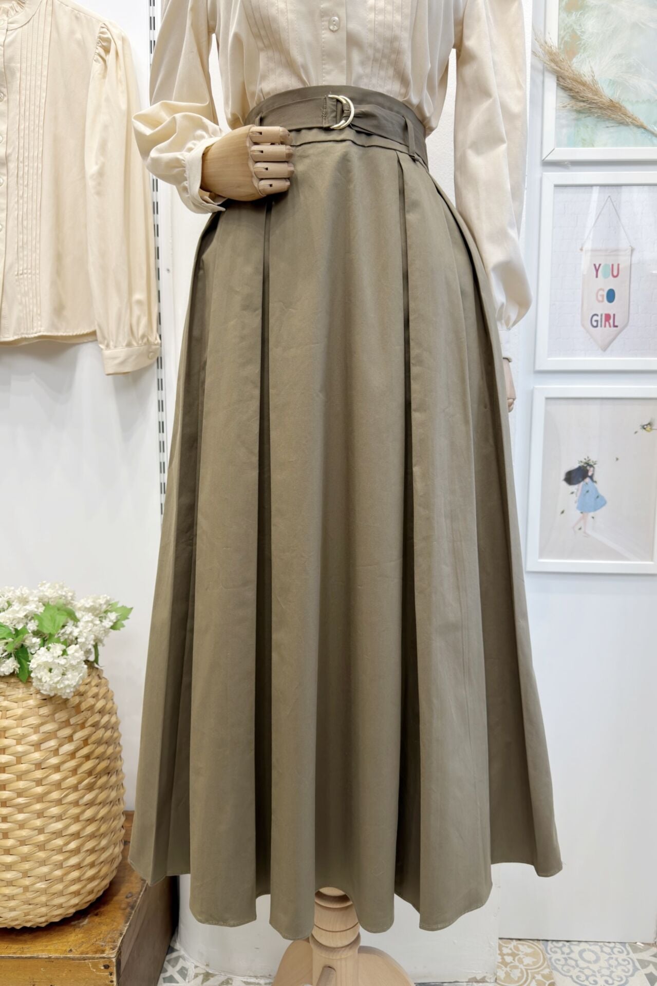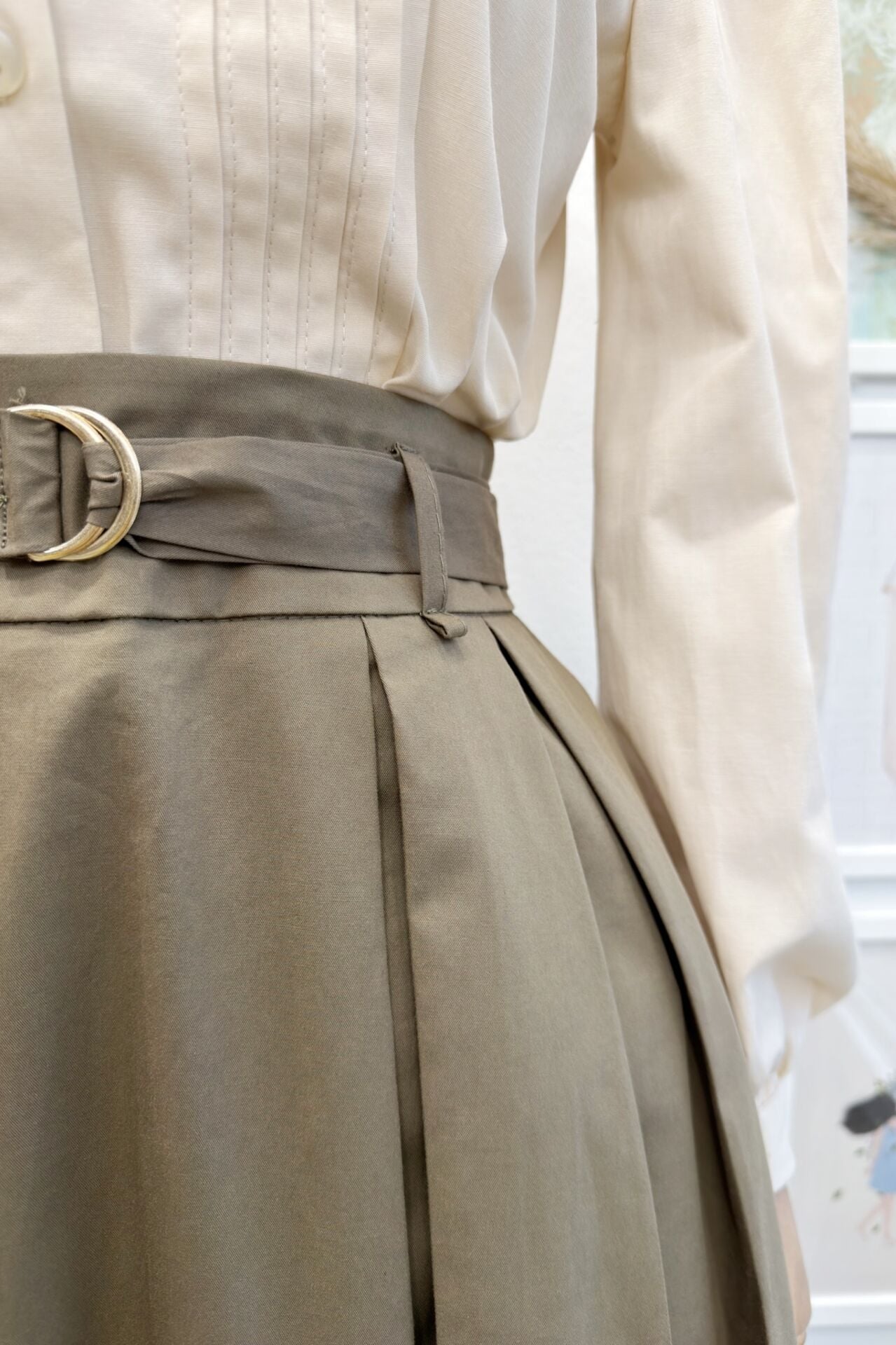 Haki Yeşili Novera Kemer Detaylı Etek