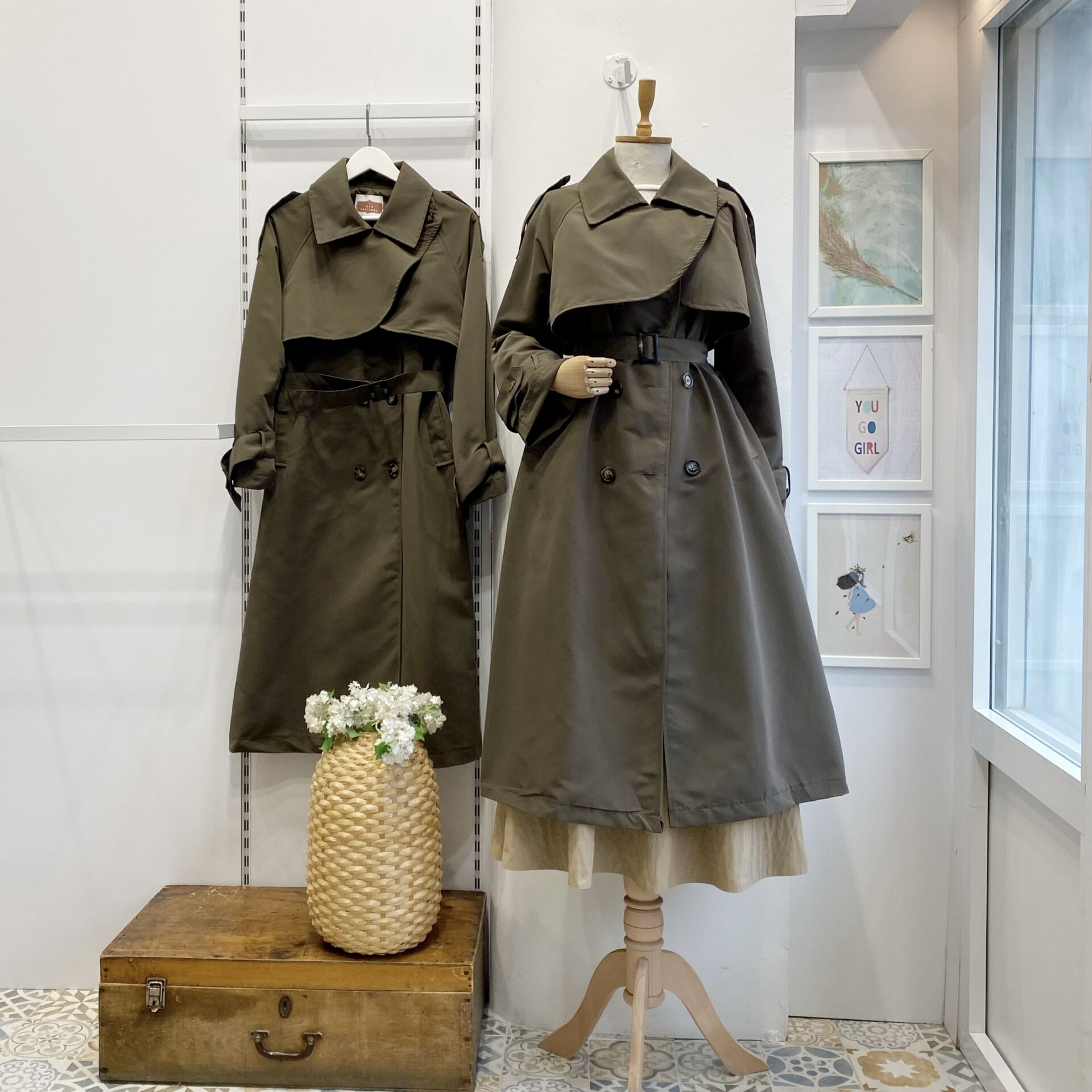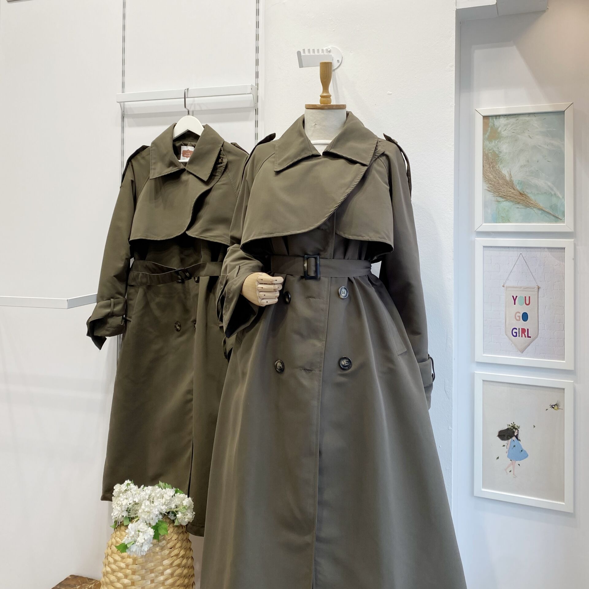 Haki Yeşili Rüzgarlıklı Gloss Trençkot