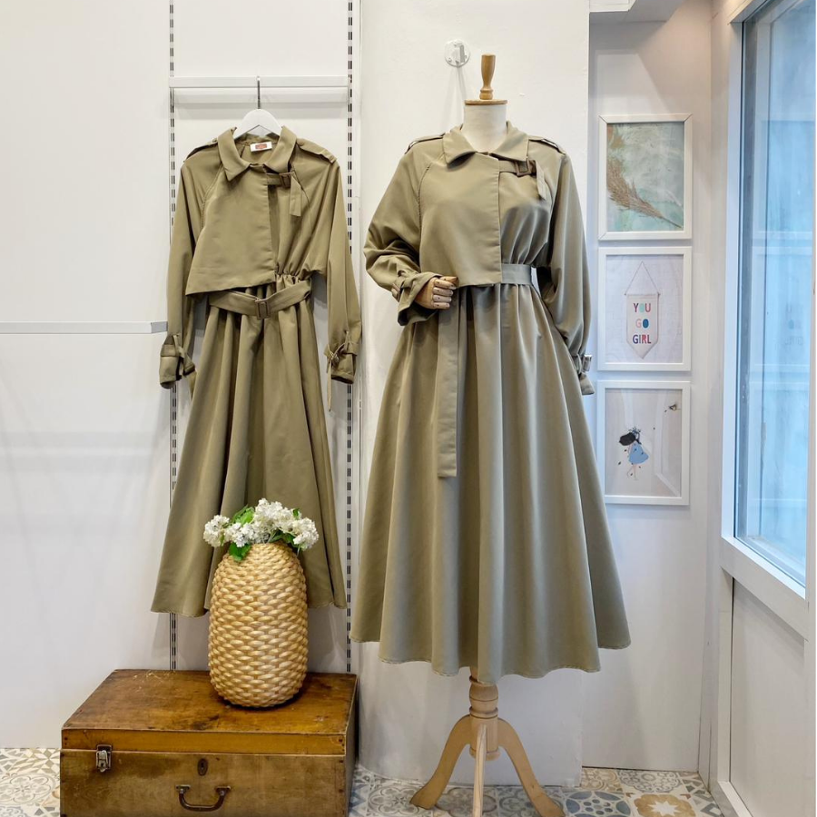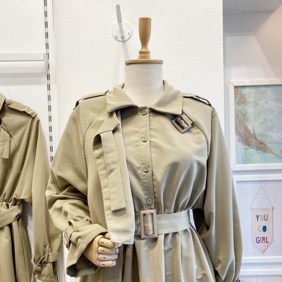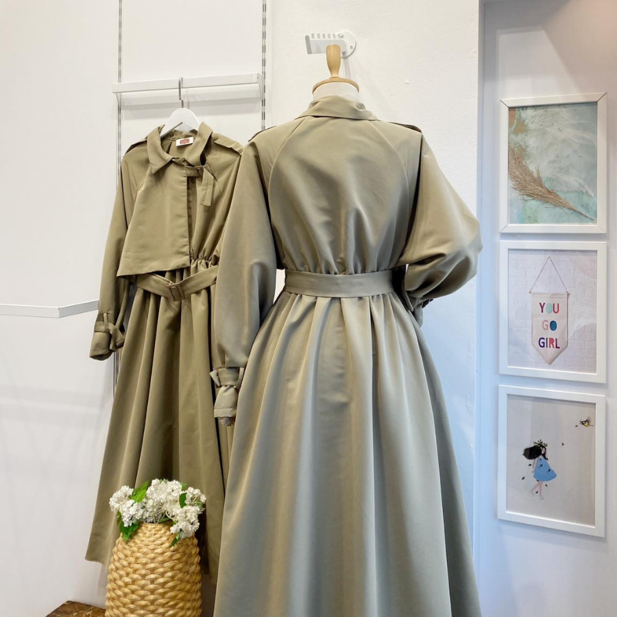 Haki Yeşili Trenç Model Elbise
