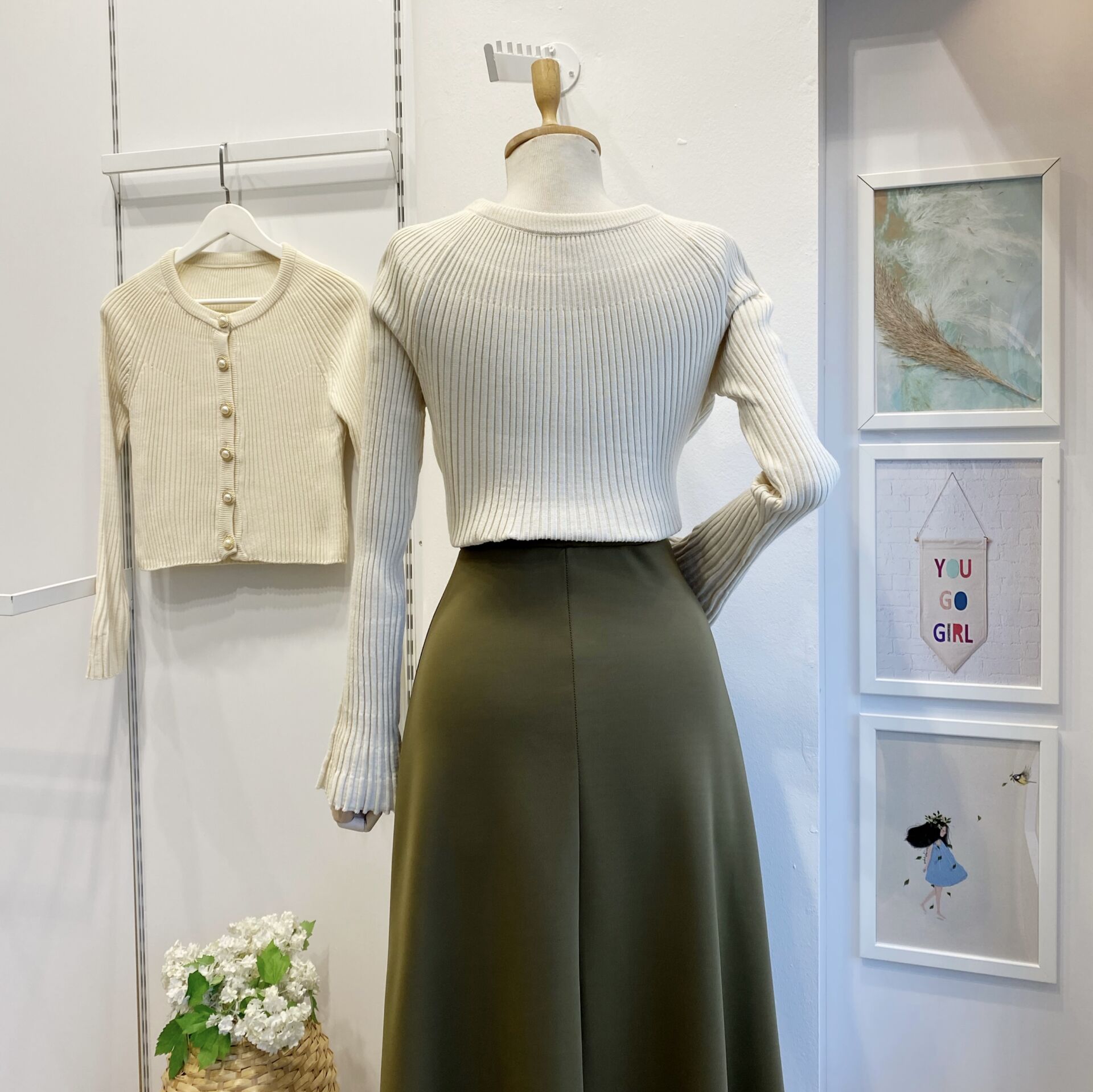 İnci Düğmeli Krem İspanyol Kol Hırka