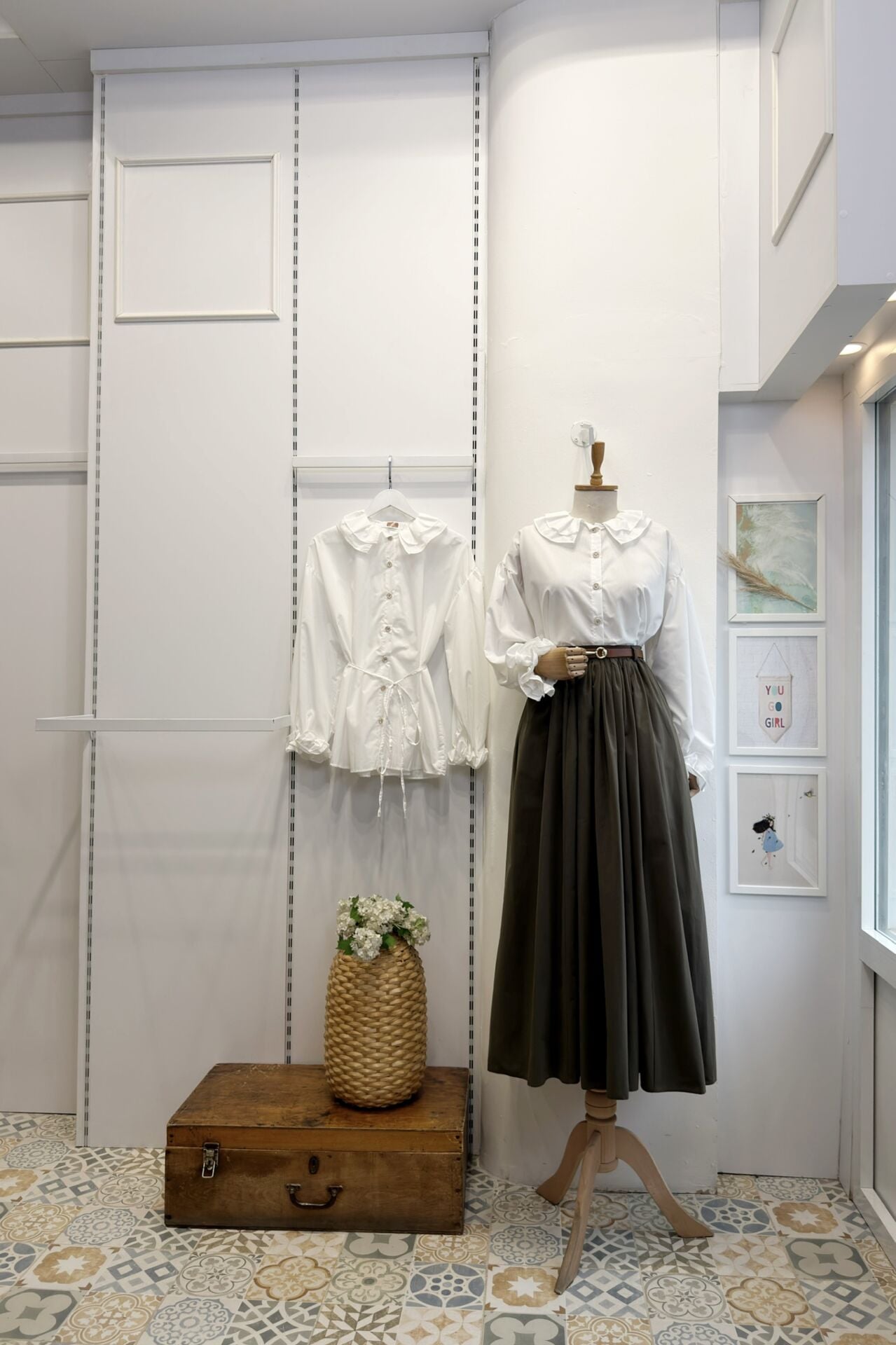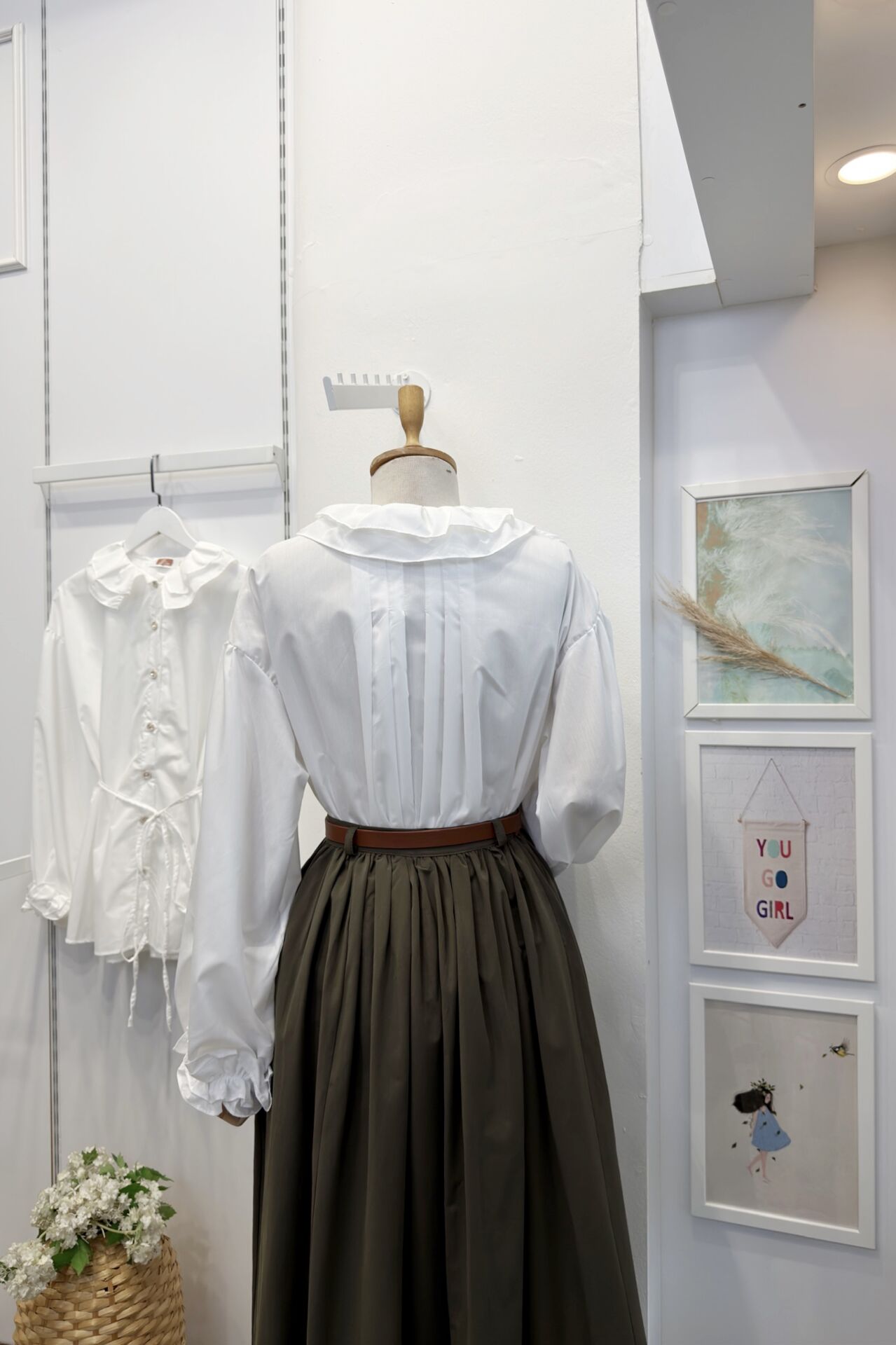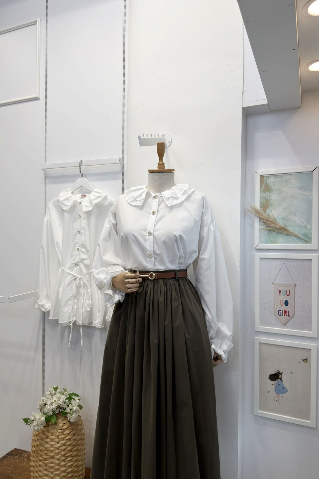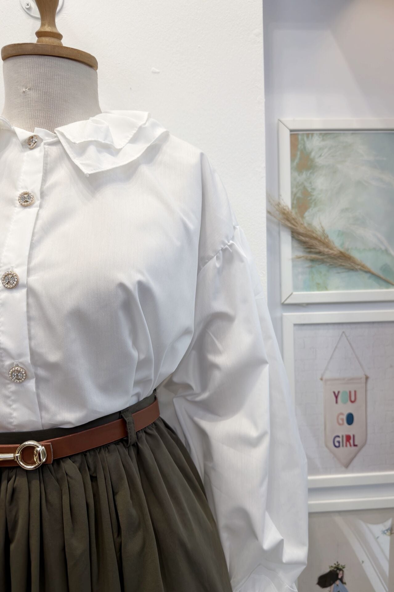 İnci Düğmeli Yakası Fırfırlı Beyaz Tunik