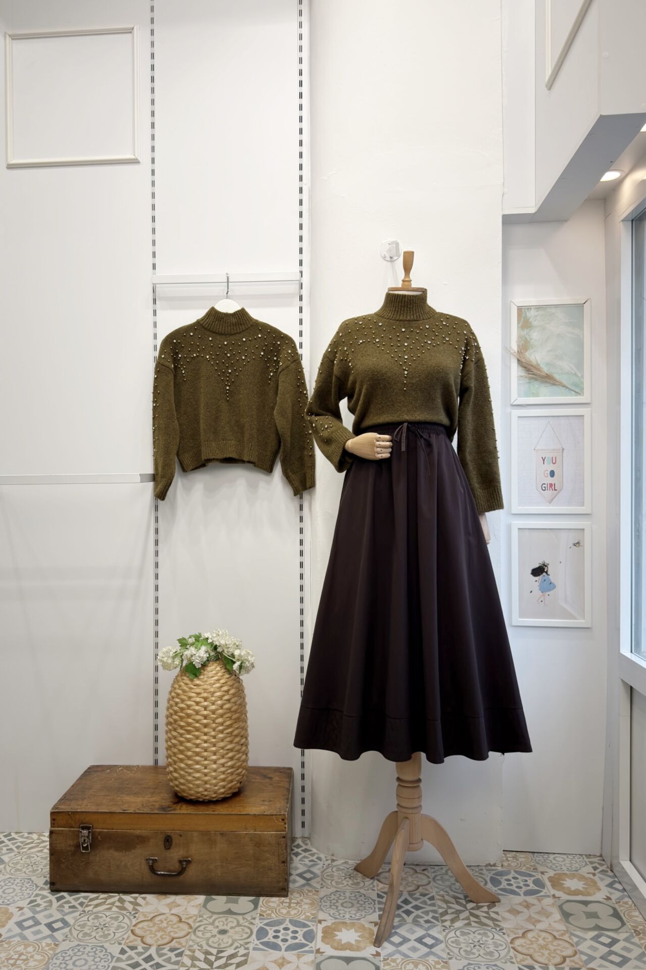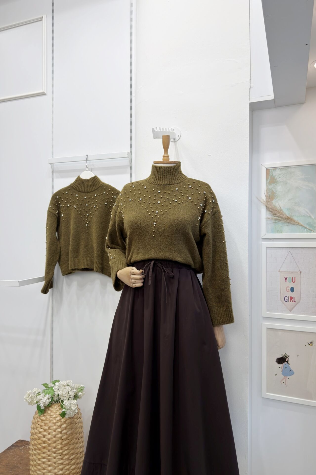 İnci İşlemeli Yağ Yeşili Kazak