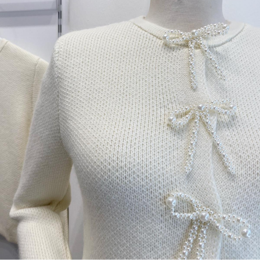İncili Fiyonk Aksesuarlı Triko Hırka