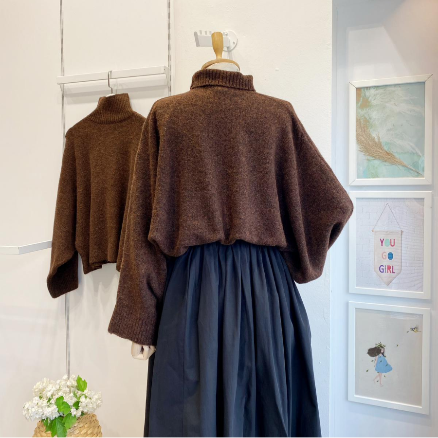 Kahverengi Yumuşak Dokulu Yarasa Kol Kazak