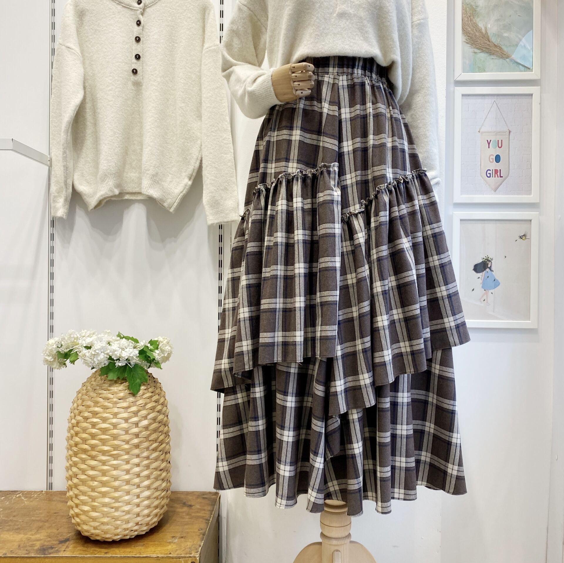 Kahve Ekose Desenli Ajouter Etek