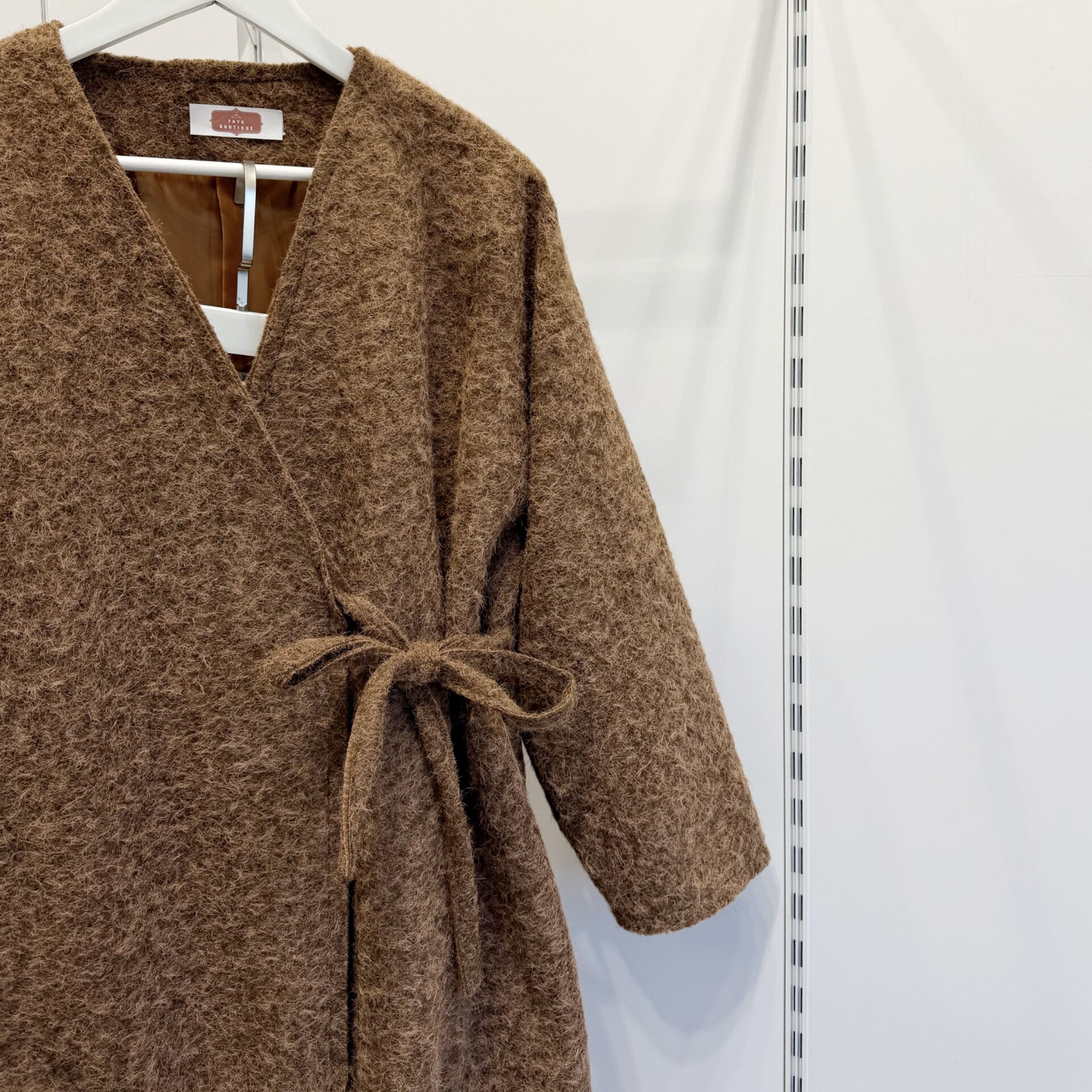 Kahverengi Anvelop Bağcıklı Yün Ceket