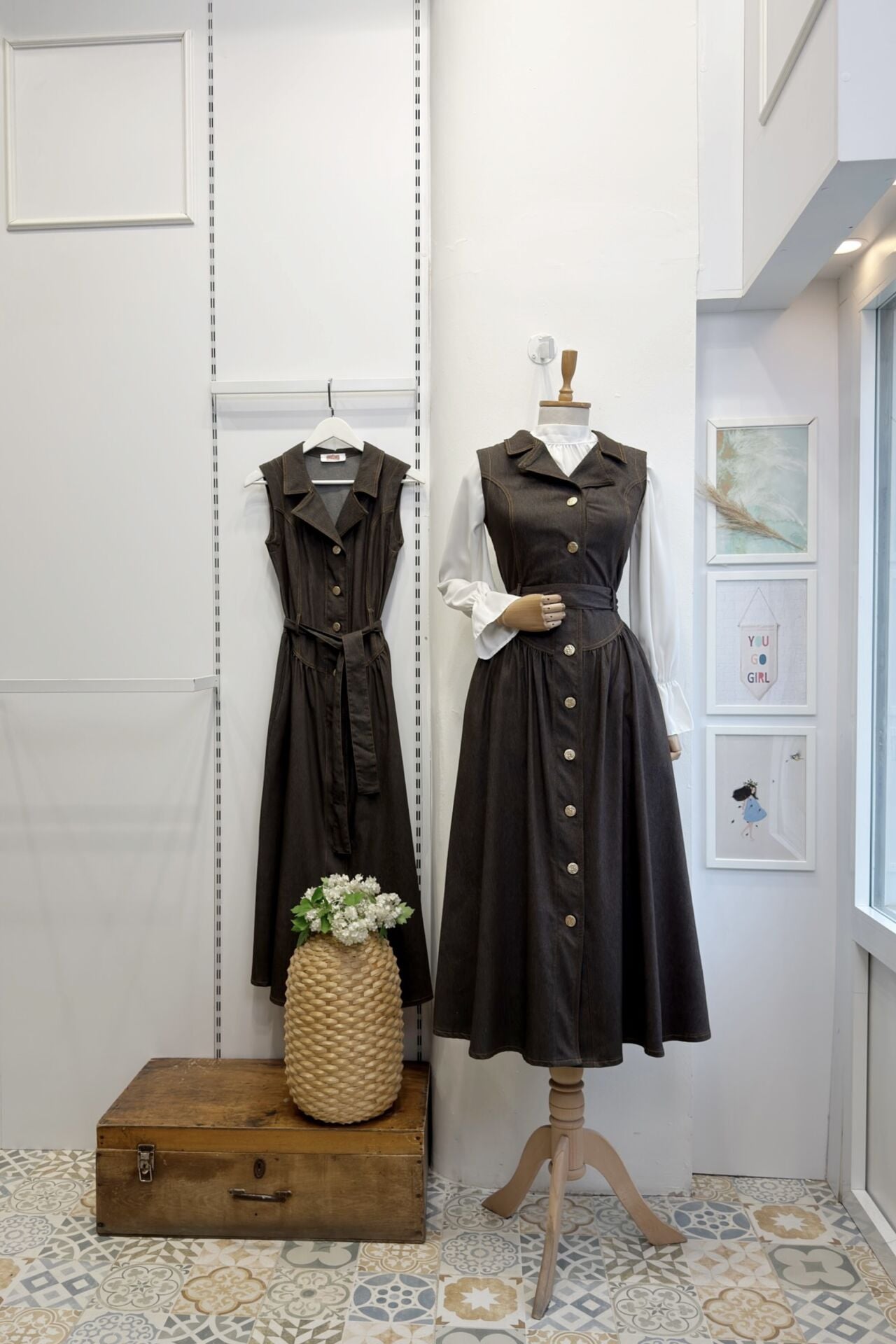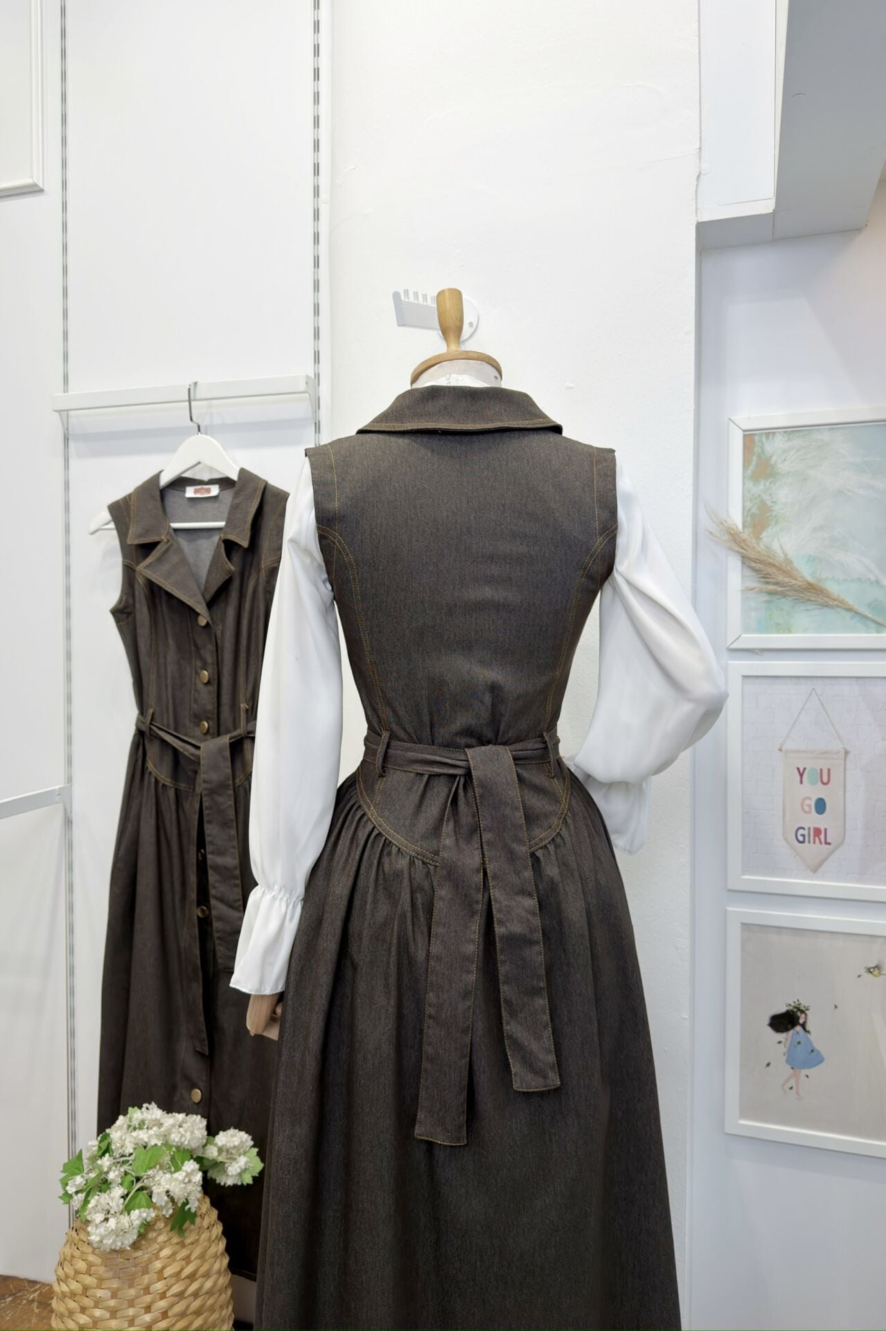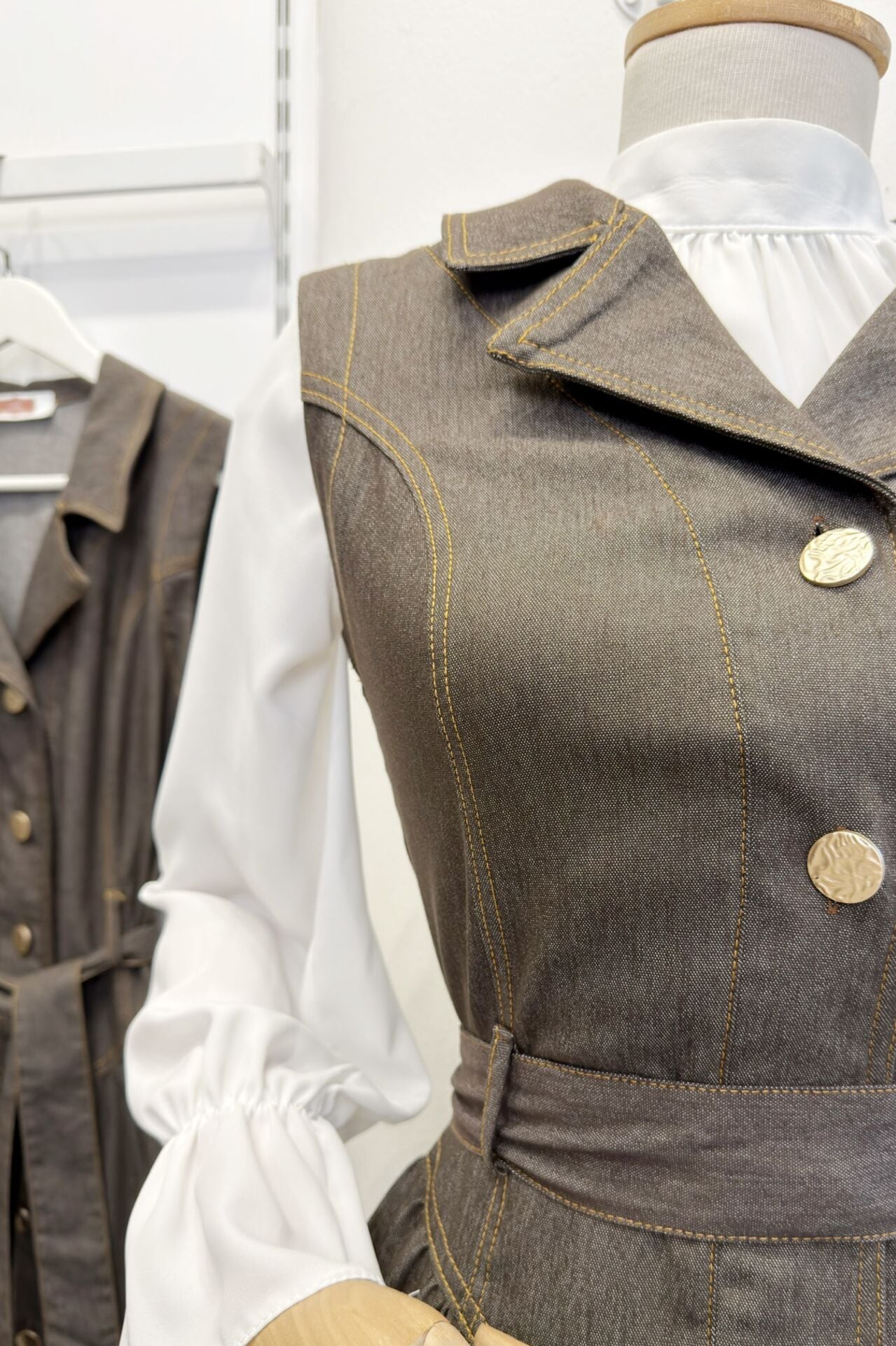 Kahverengi Bel Detaylı Gömlek Yaka Kot Jile