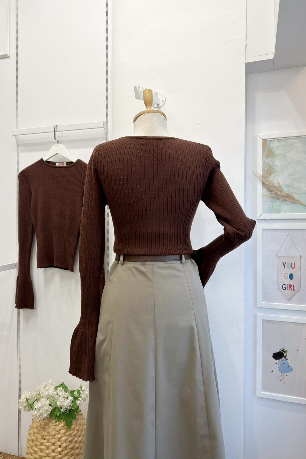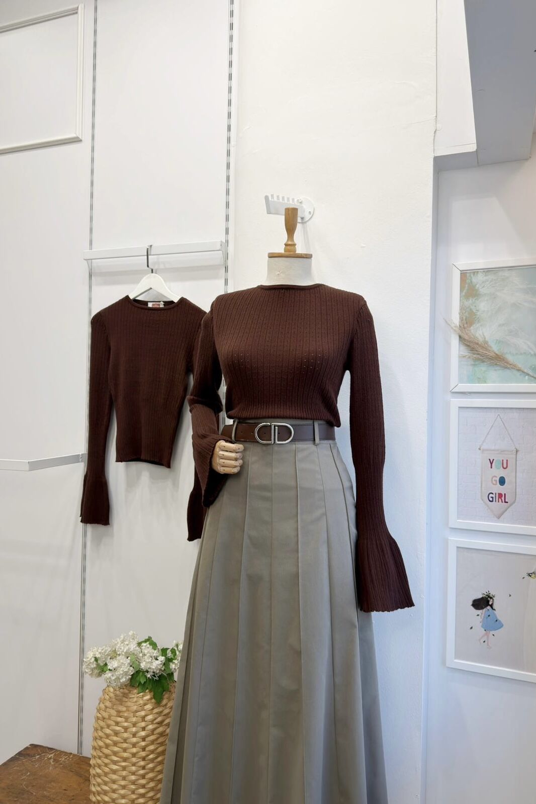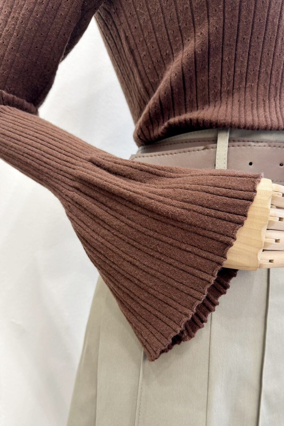 Kahverengi Beli Lastikli Triko Bluz