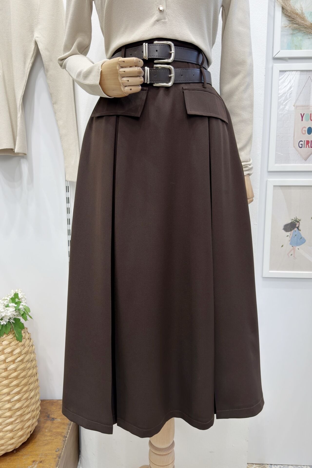 Kahverengi Caline Crep Etek