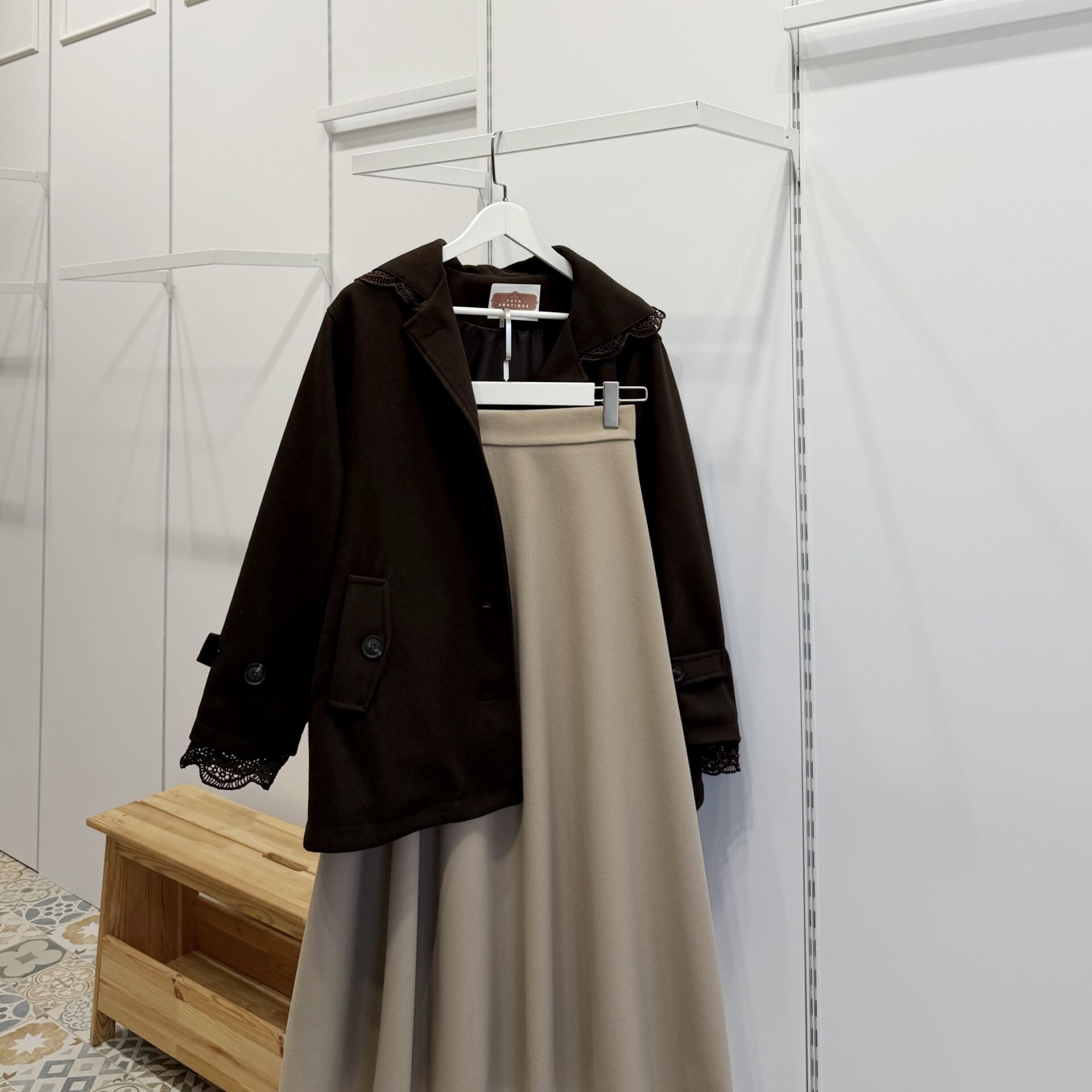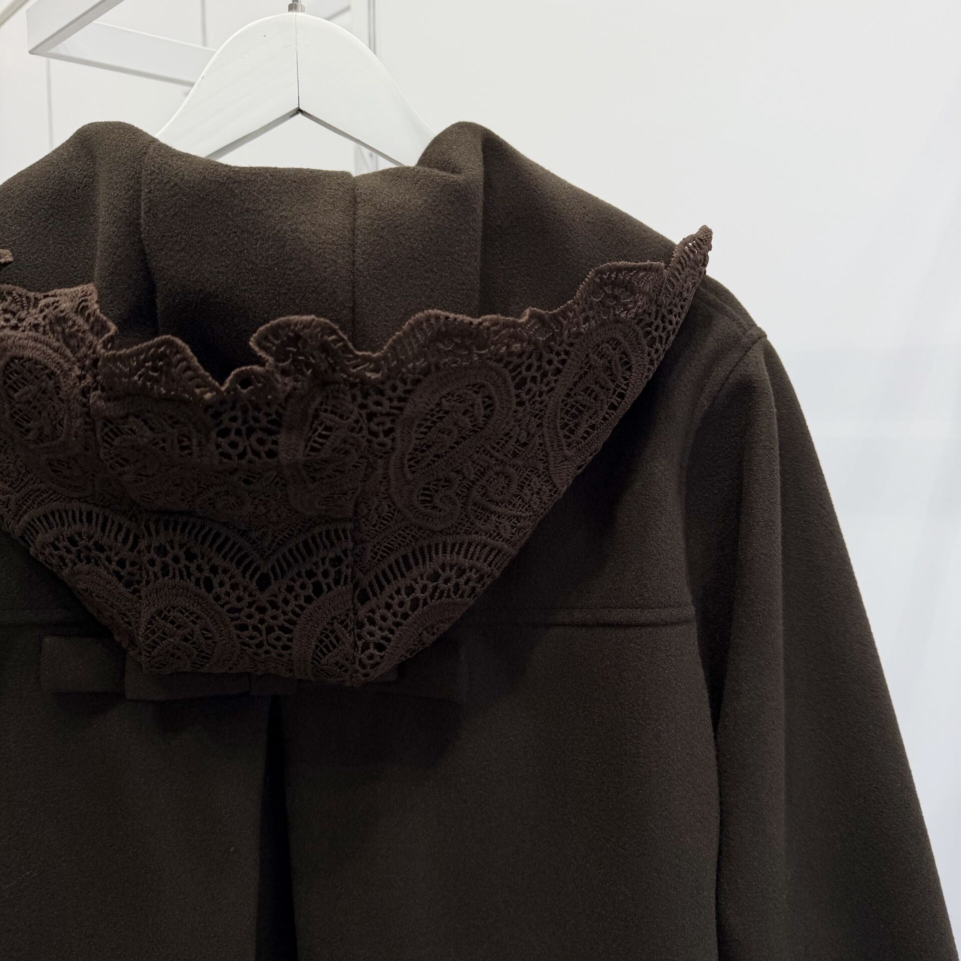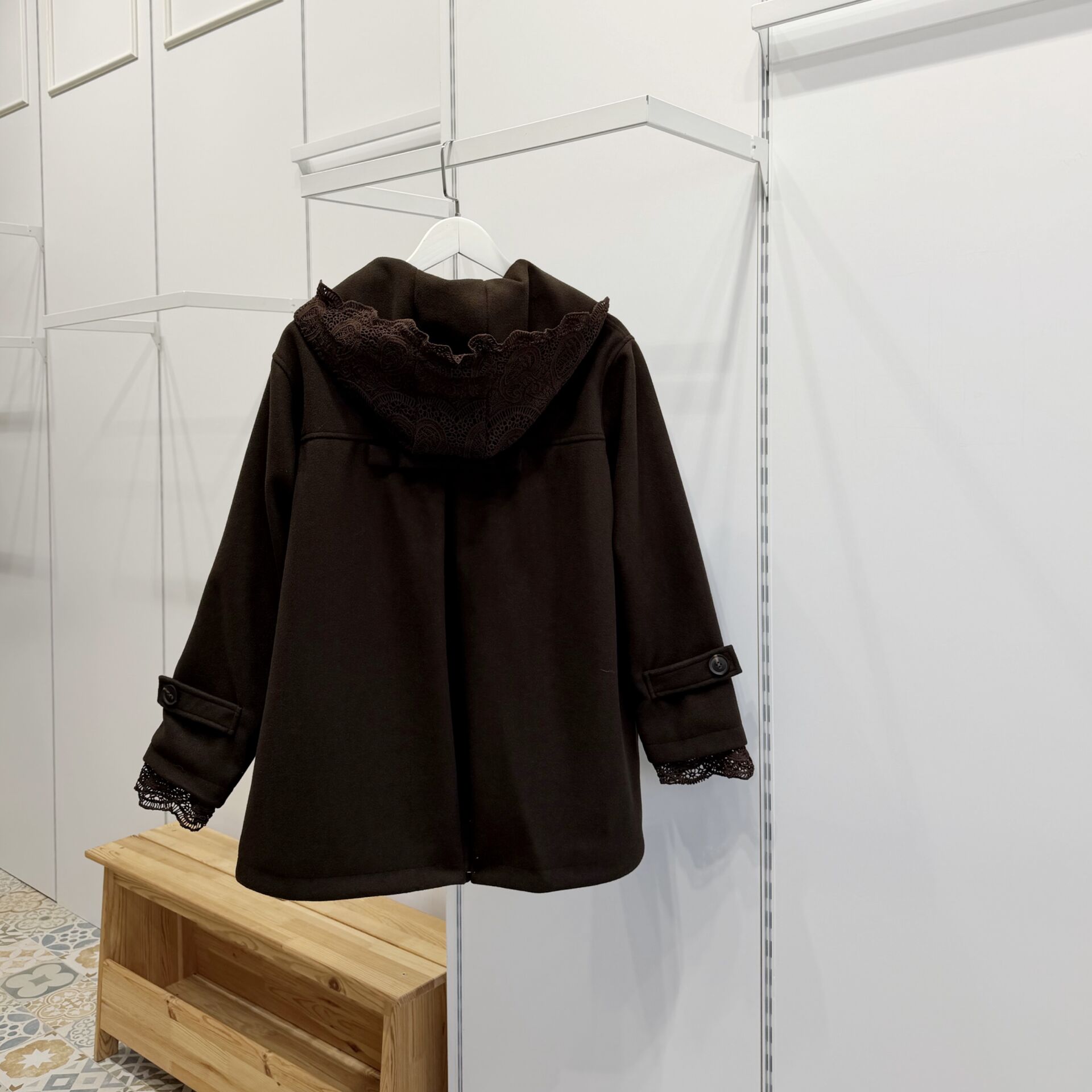 Kahverengi Dantel Kapüşonlu Kısa Kaşe Kaban